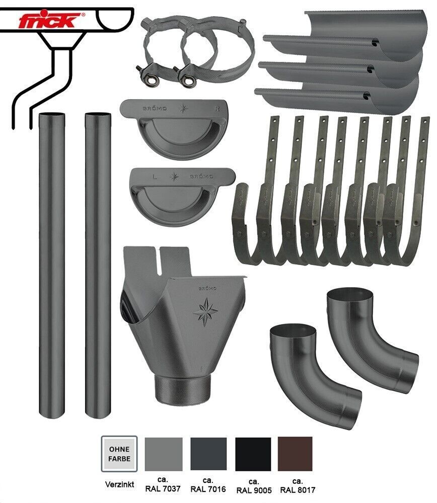 Dachrinnen Komplettset verzinkt farbig 8tlg/250 - 7tlg/280 - 6tlg/333