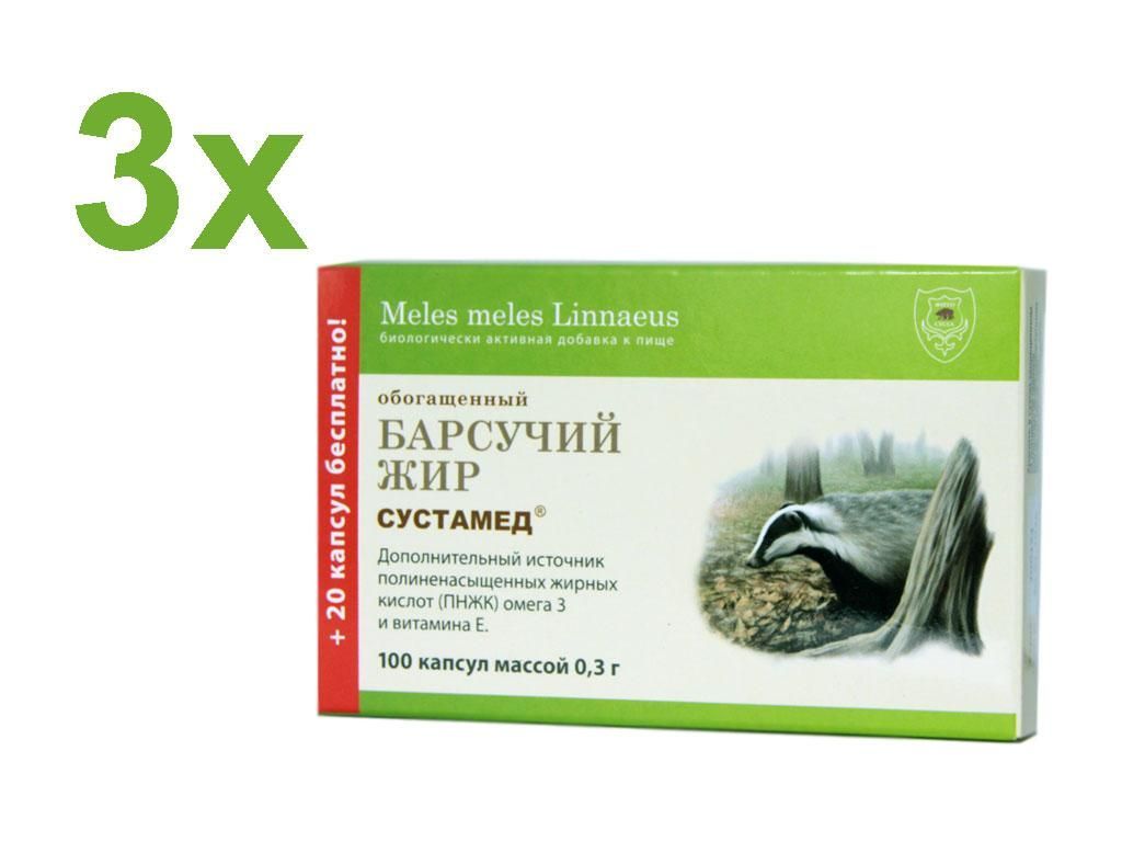 Dachsfett 3 x 120 Gelatinekapseln Sustamed Dachs Fett Murmeltierfett Badger fat