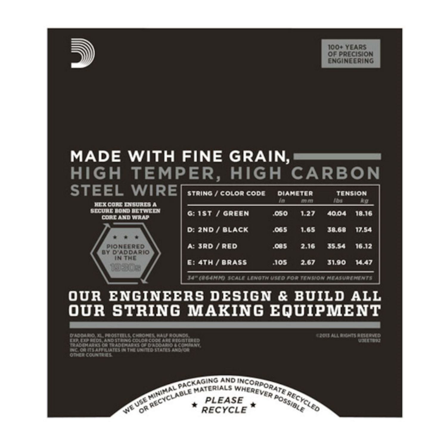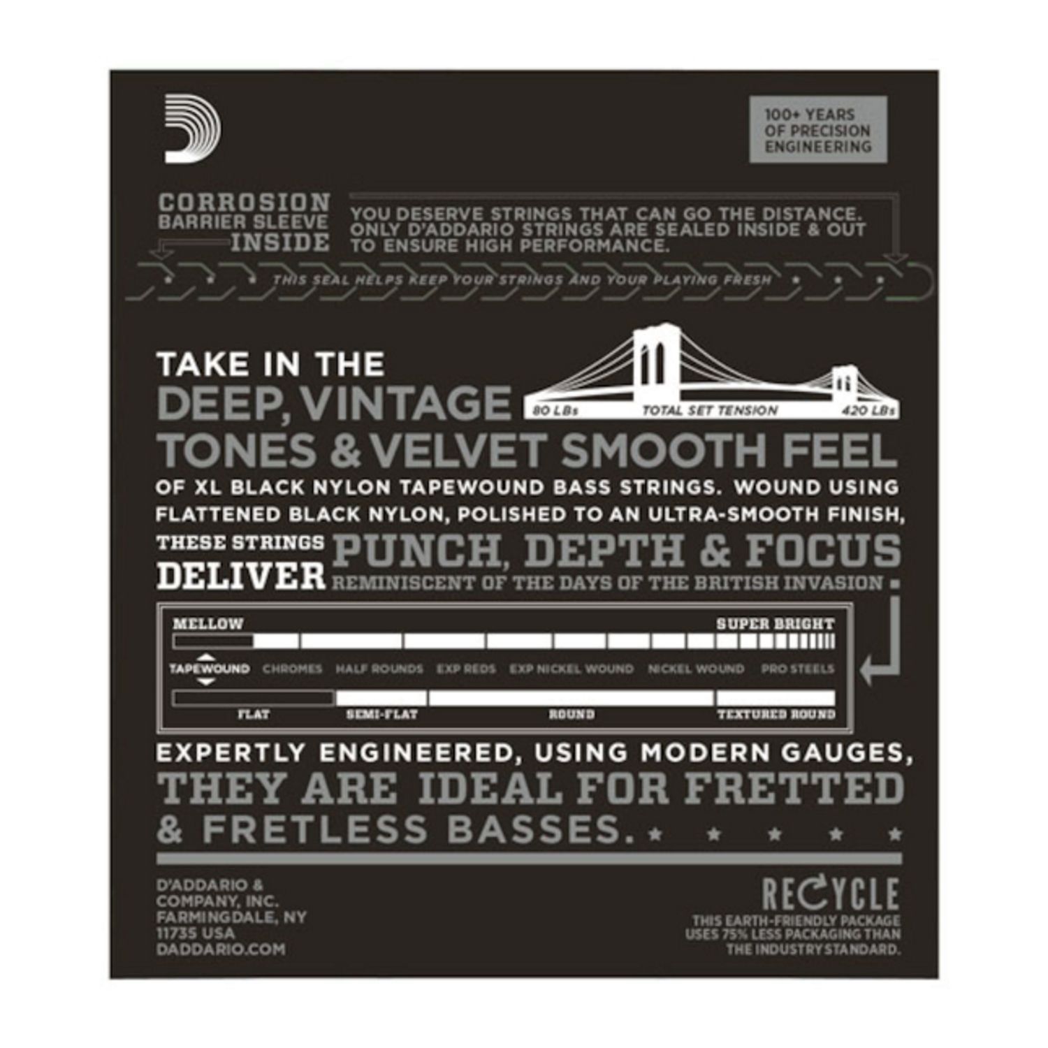 D'Addario ETB-92 Tapewound Bass .050-.105 Der ETB92 mit Flachdraht umsponnene ('flatwound') Satz aus schwarzem Nylon stellt eine ideale Kombination eines warmen, tiefen Tons mit einem ultra-glatten Gefühl dar. erzeugen einen warmen, tiefen Ton mit abgeflachtem schwarzen Nylon umsponnen Medium für op