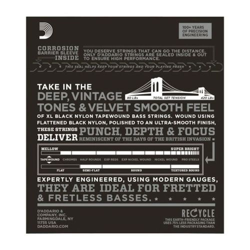 D´addario ETB92S Tapewound Bass Medium 050-105 - Short Scale Short Scale Mensur Black Nylon Tapewound Medium Gauge Tiefer und warmer Sound 050 - 065 - 085 - 105