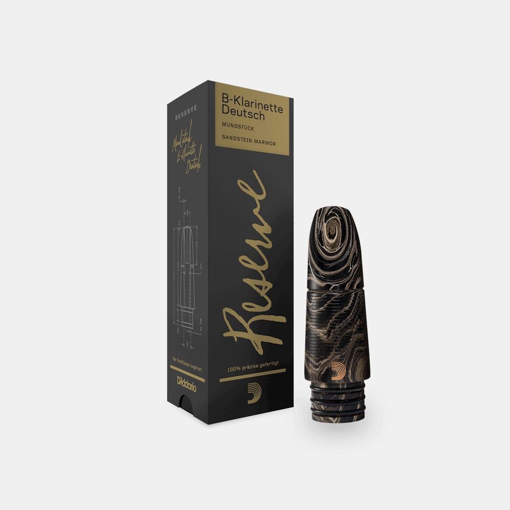 Reserve Mundstück für B-Klarinette (deutsch), marmoriert: Das Reserve Modell wurde von den am meisten geschätzten Mundstücken aus den 1920er Jahren inspiriert und ist gleichzeitig mit moderner Technologie von D'Addario ausgestattet, die die unvergleichliche Handwerkskunst neu zum Leben erweckt. Dies
