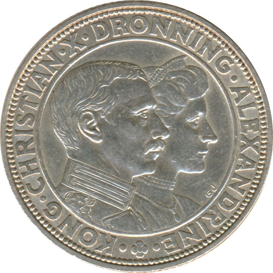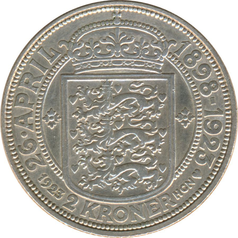 Dänemark 2 Kroner 1923 Silberne Hochzeit des Königspaares Silber*