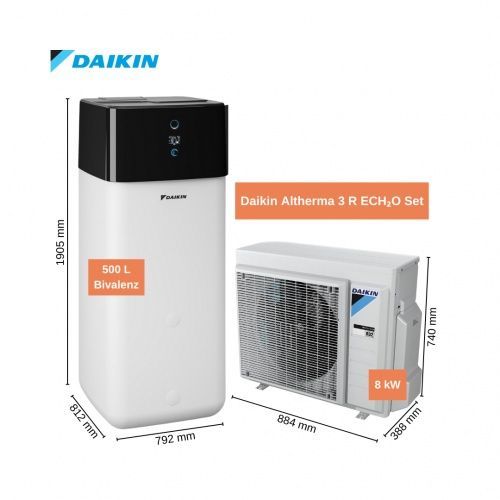 Daikin Daikin Altherma 3 R ECH?O Komplett-Set 8 kW Wärmepumpe Hygienespeicher 500l Biv