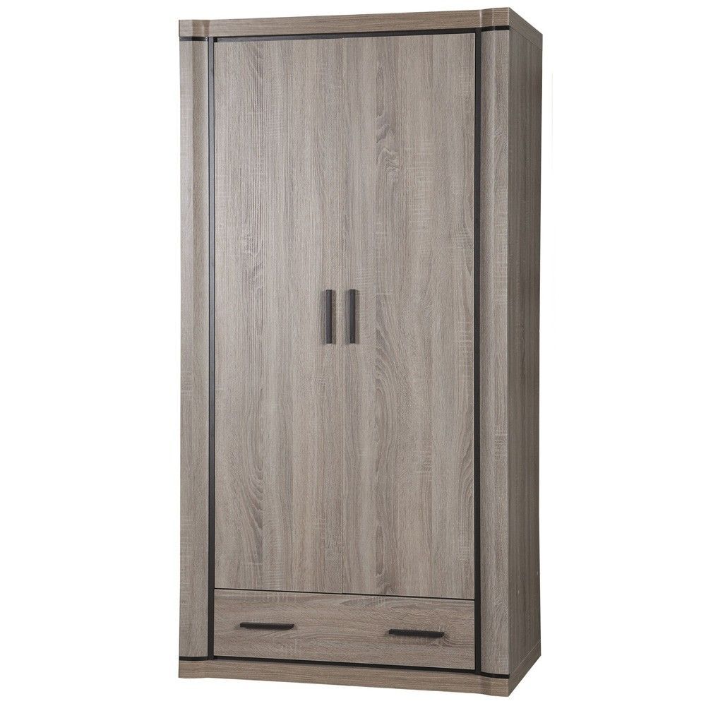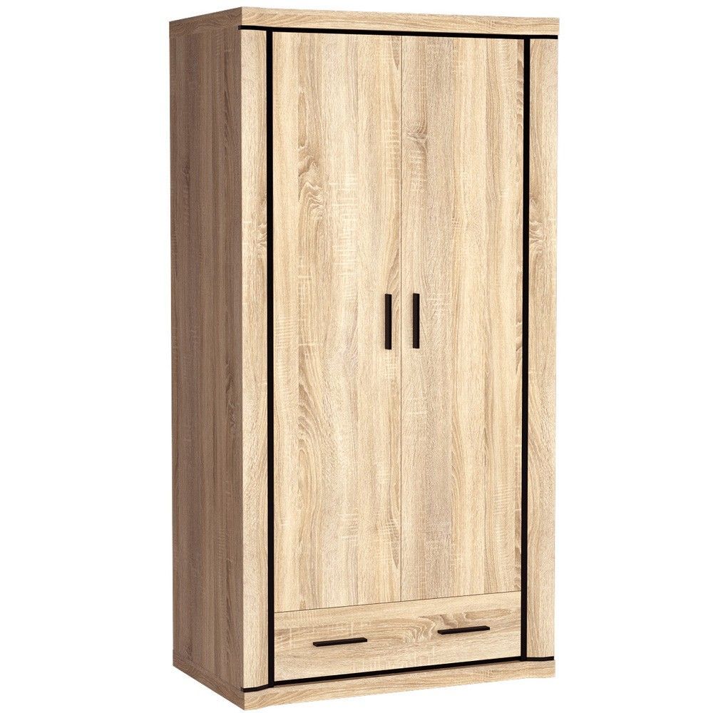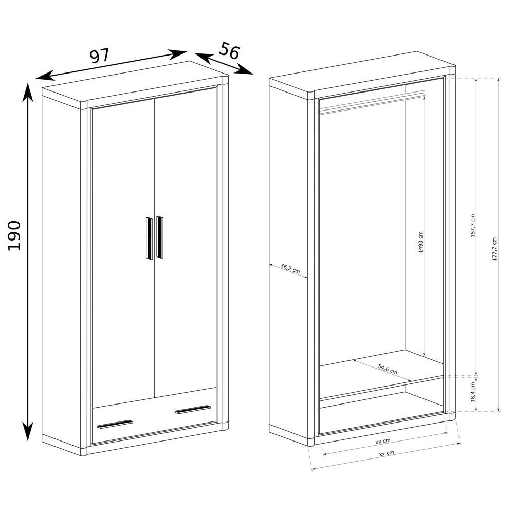 Marmex Dallas D20 - Großer zweitüriger Kleiderschrank mit Schublade; eine Bar hinter der Tür; für Kleidung oder andere Dinge; moderner Kleiderschrank für das Wohnzimmer Farbe: Trüffel Eiche Sonoma Eiche Maße: Breite: 97 cm Höhe: 192 cm Tiefe: 58 cm Ausführung: 22 Funktionselemente in einem interessa