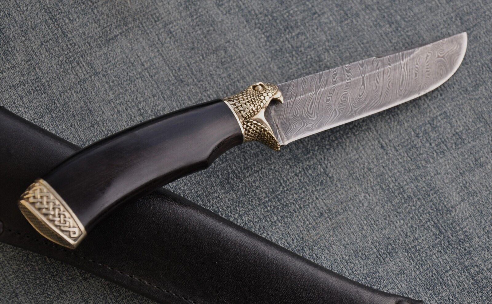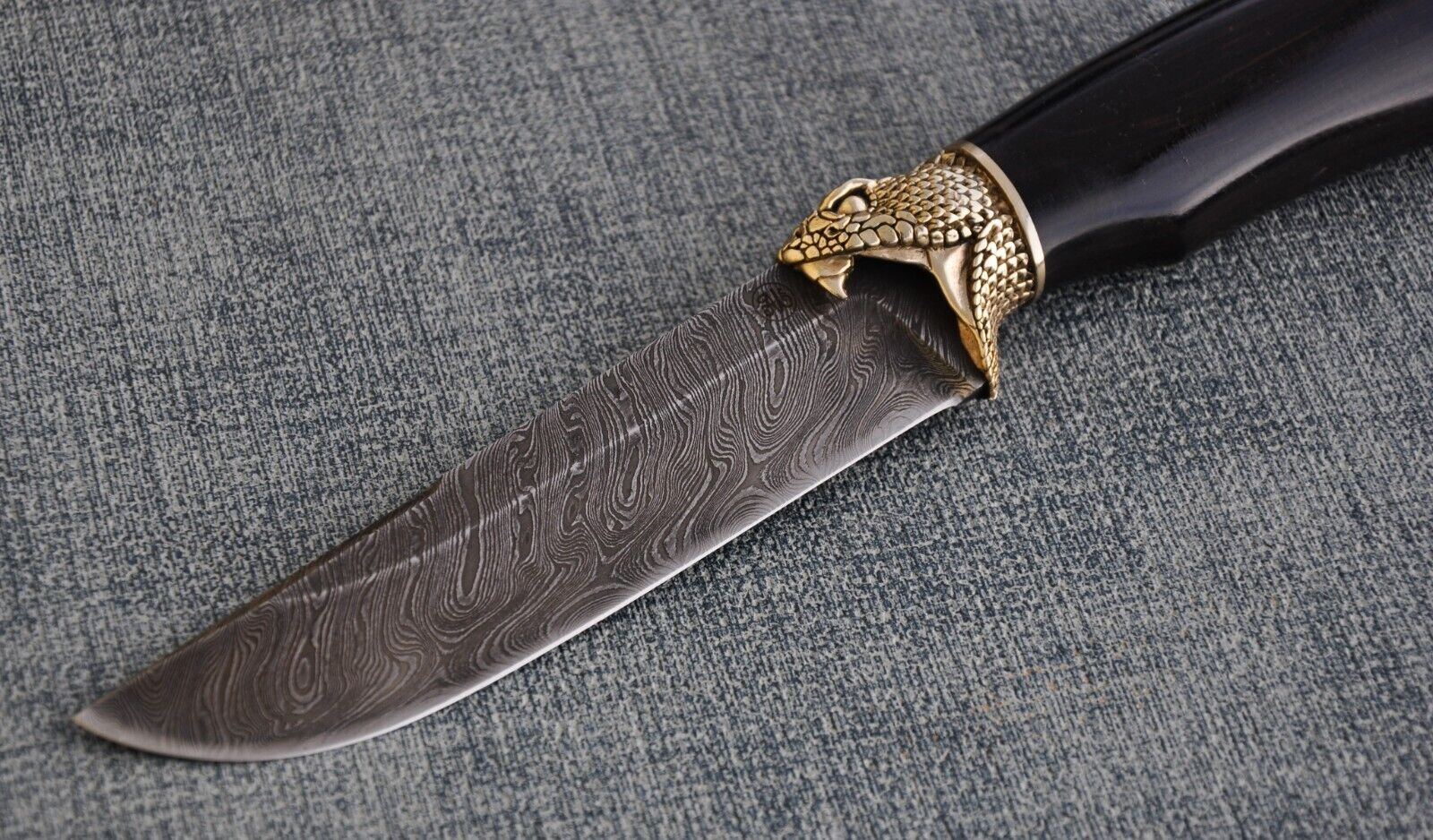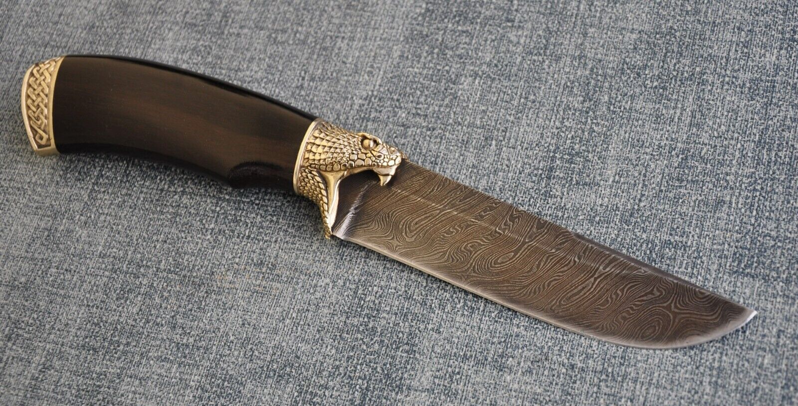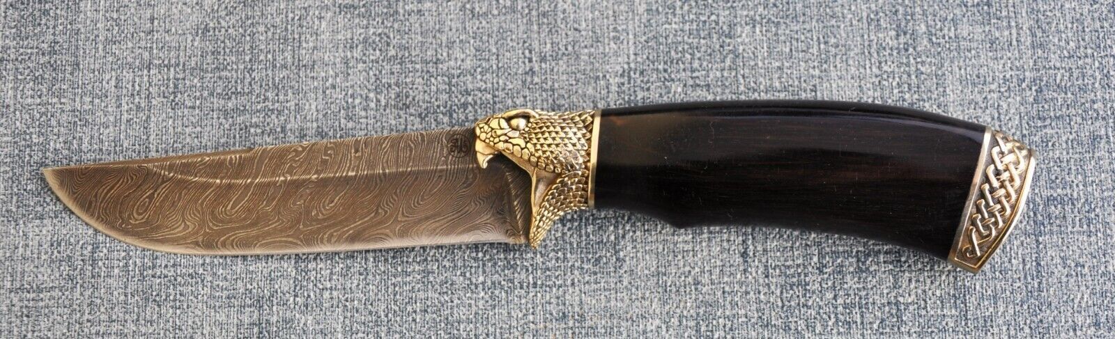Damaszener Damaststahl Outdoor JagdMesser HRC62 Handarbeit A. Maruschin Russland