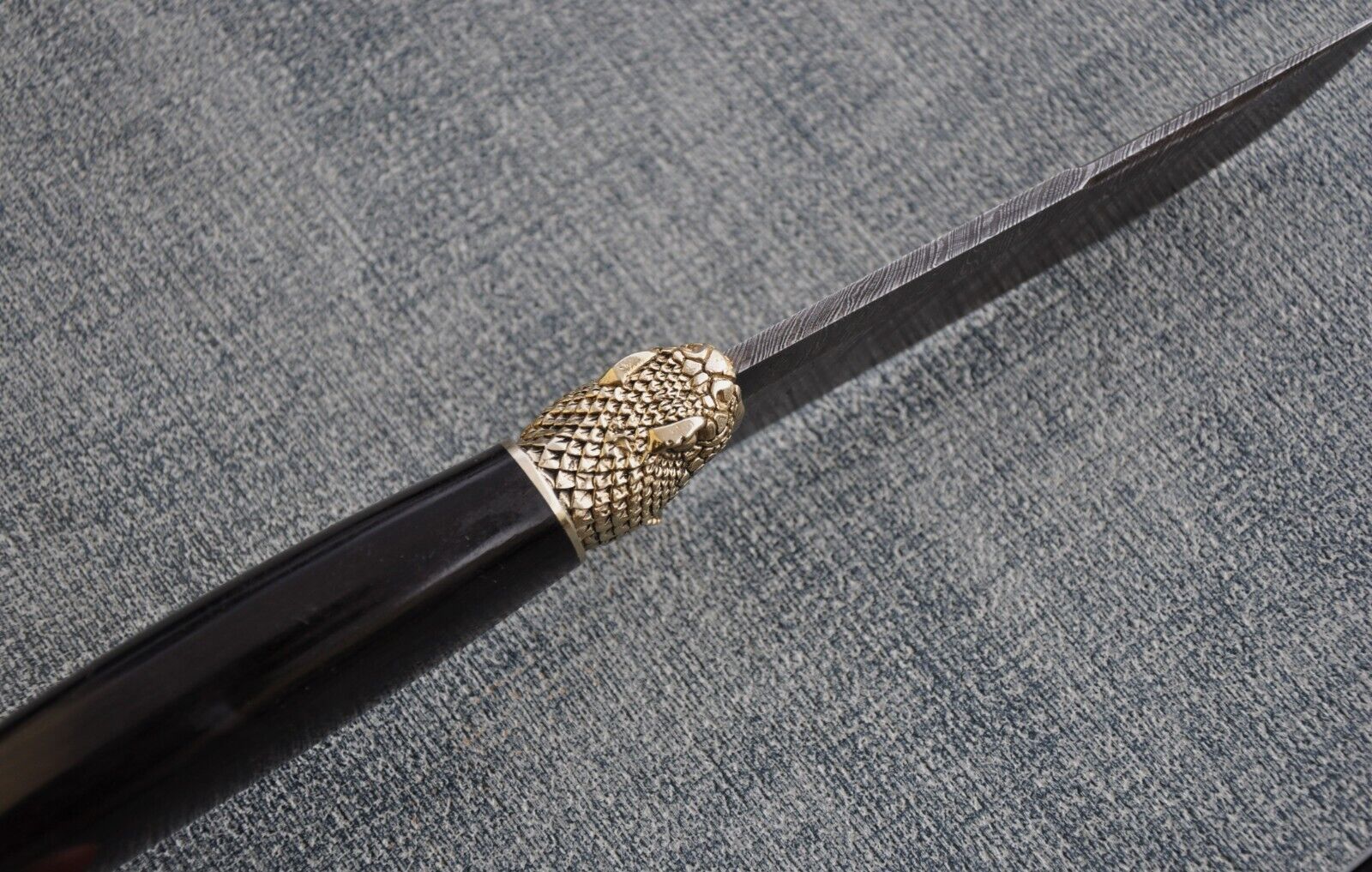 Zum Verkauf steht ein Messer von dem Schmied Alexander Maruschin aus Russland. Alle Messer von A. Maruschin werden in Handarbeit hergestellt. Die Klinge bitte nach jedem Gebrauch mit säurefreiem Öl zu reinigen !!! Damaststahl entsteht durch Erhitzen, Verdrehen und wiederholtes Schmieden mehrerer Sta