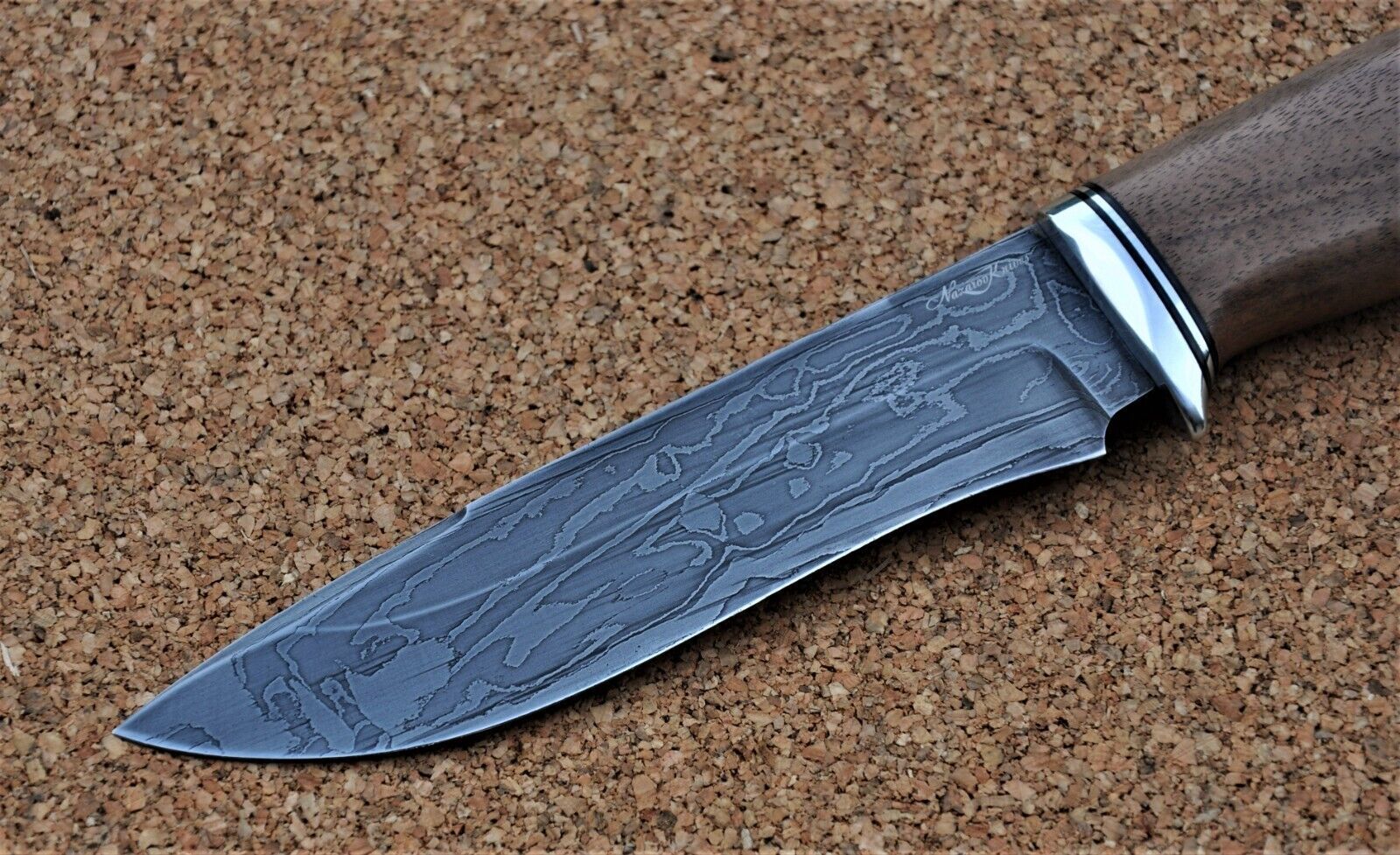 Zum Verkauf steht ein Damastmesser der Firma Nazarov Knives aus Russland. Alle Messer von Nazarov Knives sind einzigartig, langlebig(besitzen lebenslange Garantie bei sachgemäßer Nutzung) und werden aufwendig von erfahrehren Meistern in Handarbeit hergestellt. Es wird das abgebildete Messer geliefer