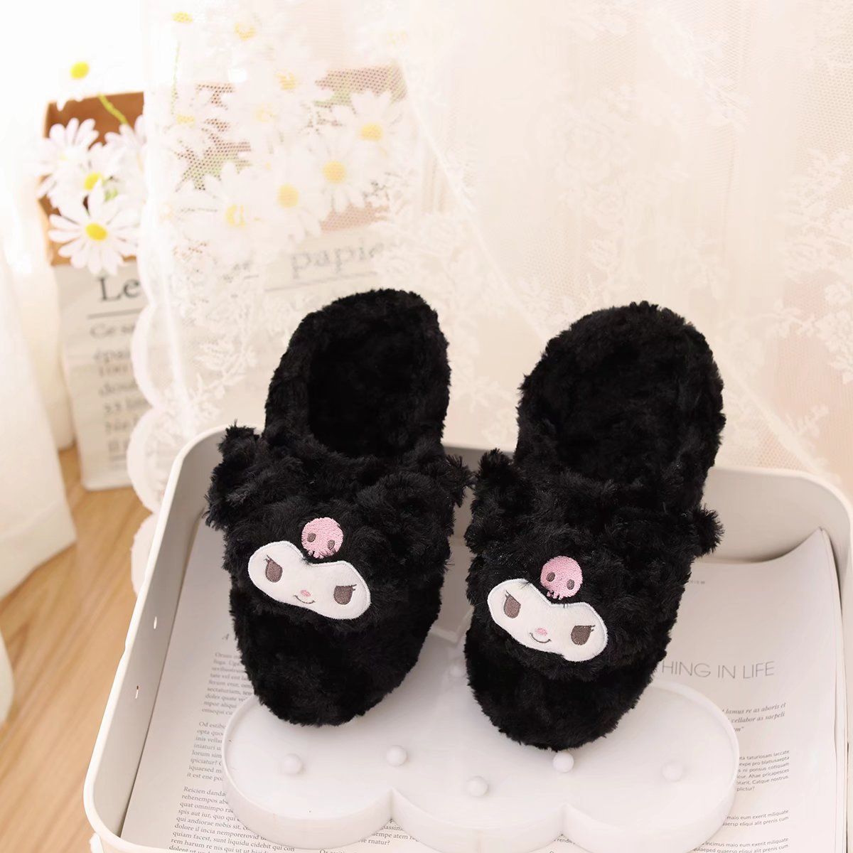 Damen Anime Kuromi Plüsch Hausschuhe Winter Hause Slippers Schwarz