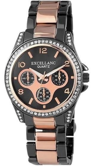 Damen Armbanduhr Edelstahlband schwarz/rosegoldfarben Analog Excellanc 1856100003