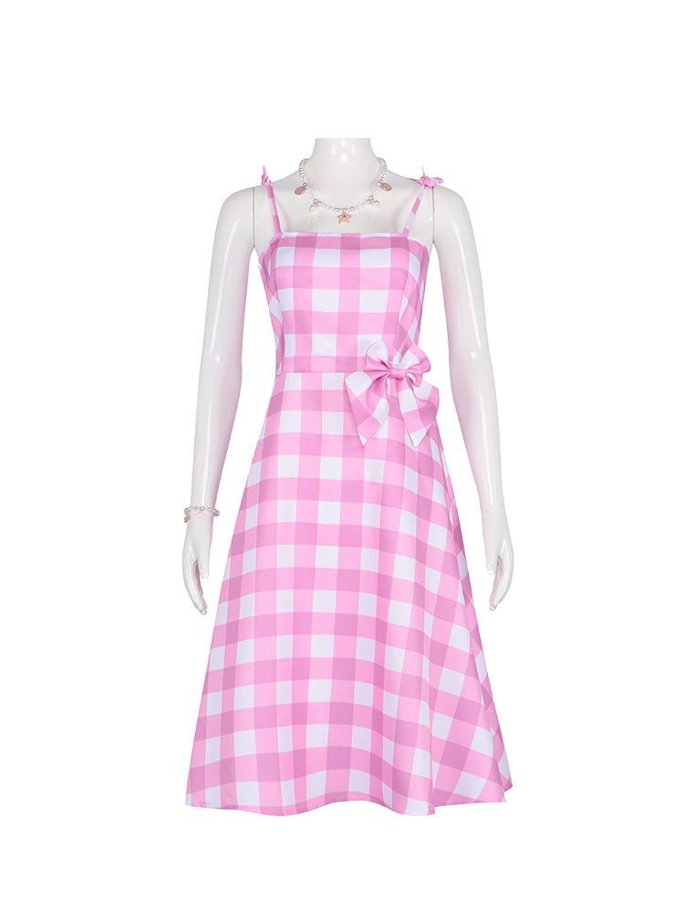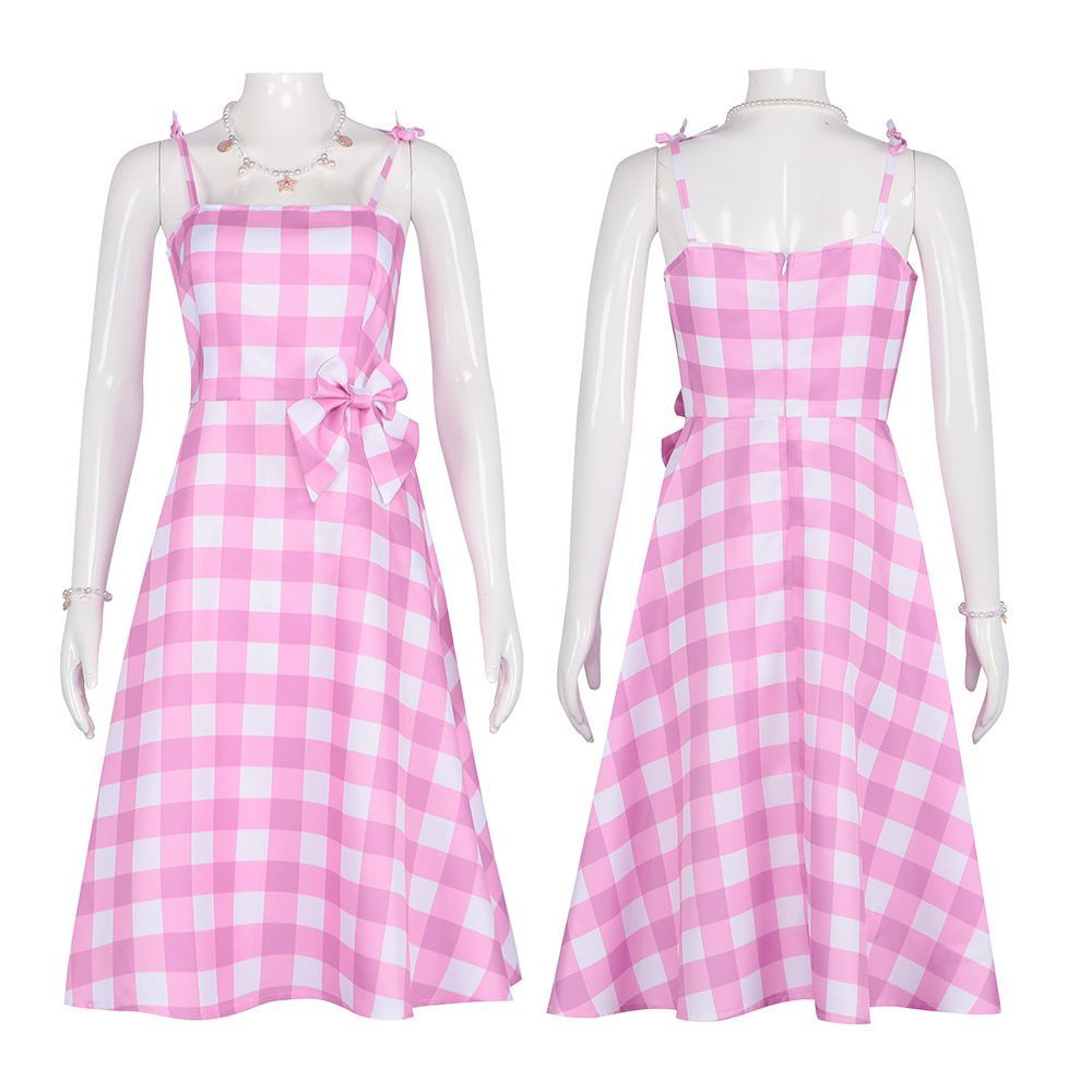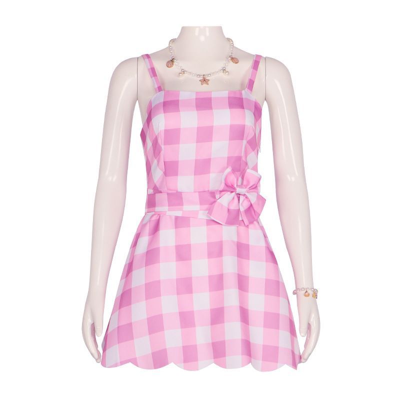 Damen Barbie Cosplay Kostüme karierter Rock Einteiliges Kleid Geburtstags geschenk