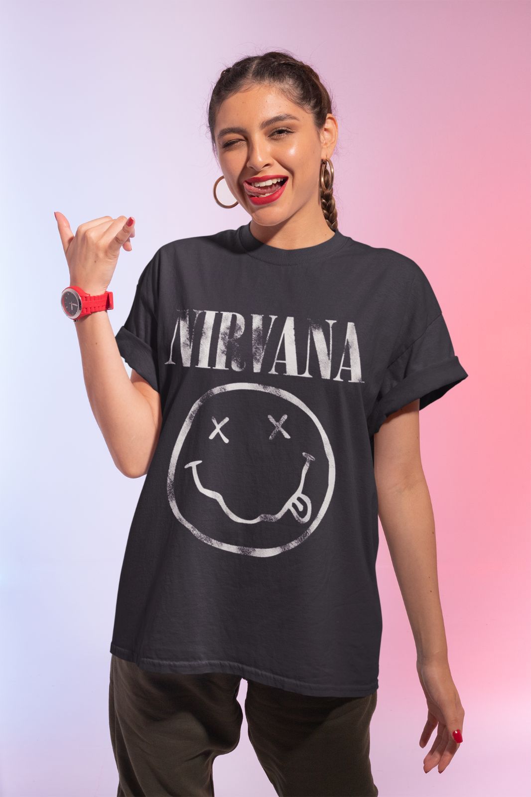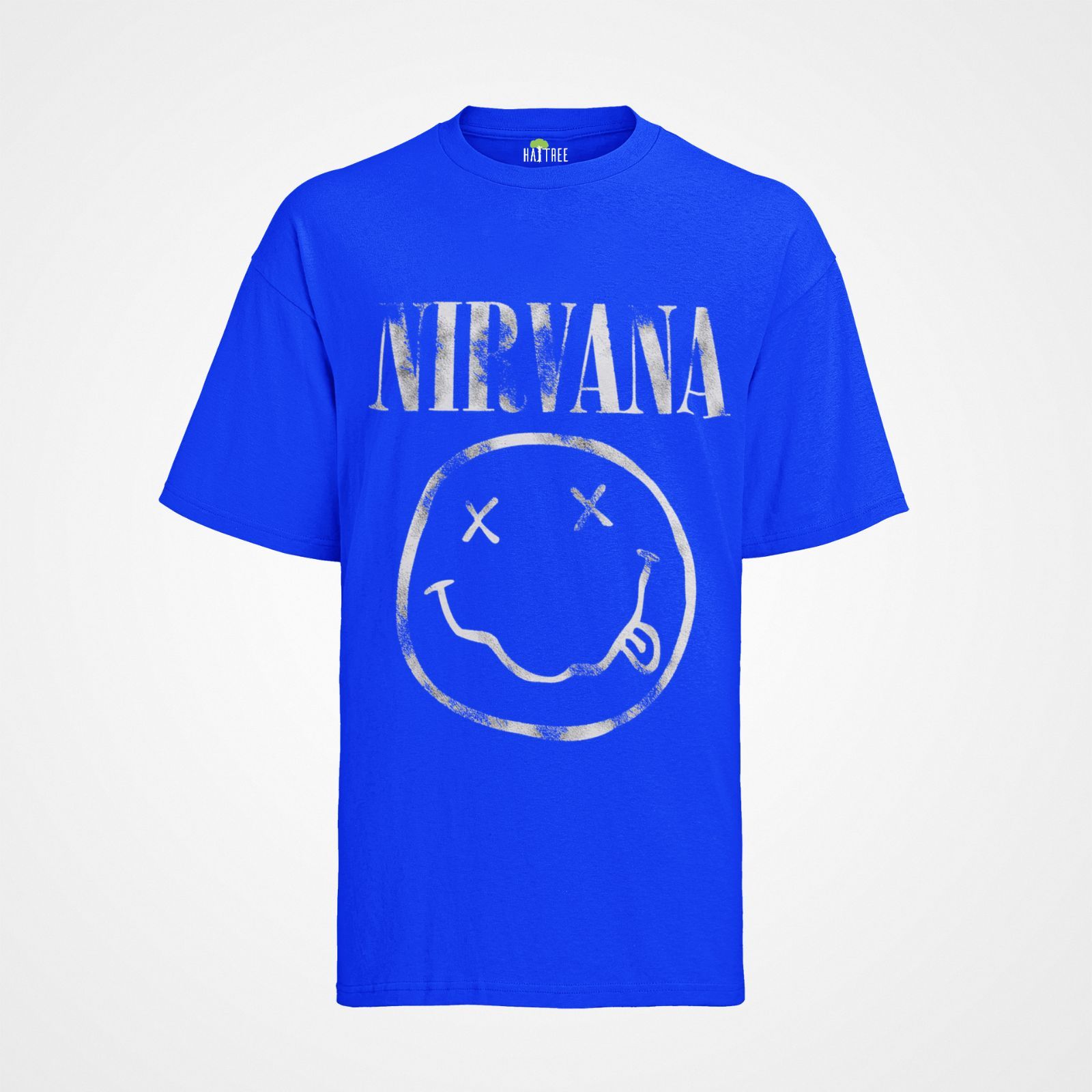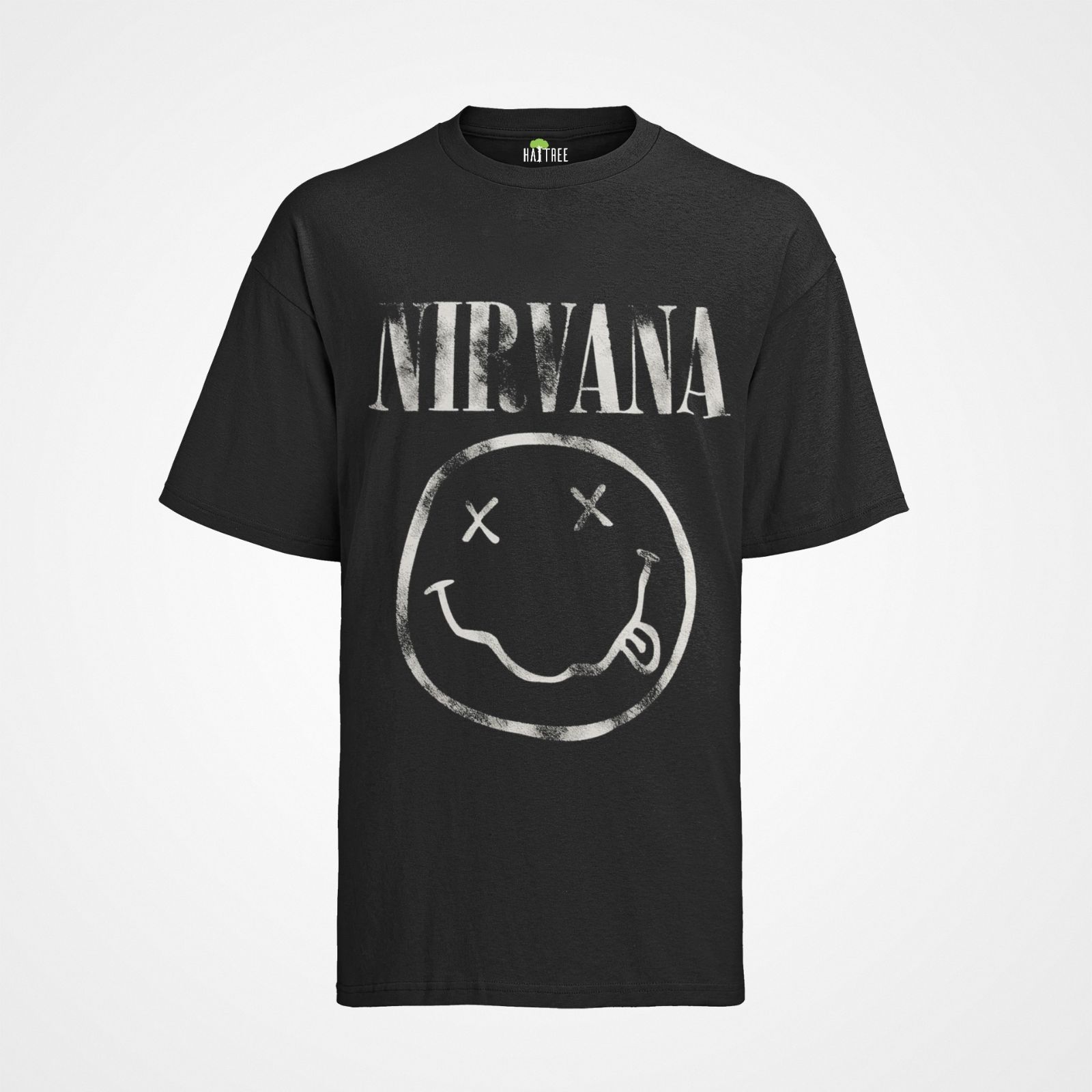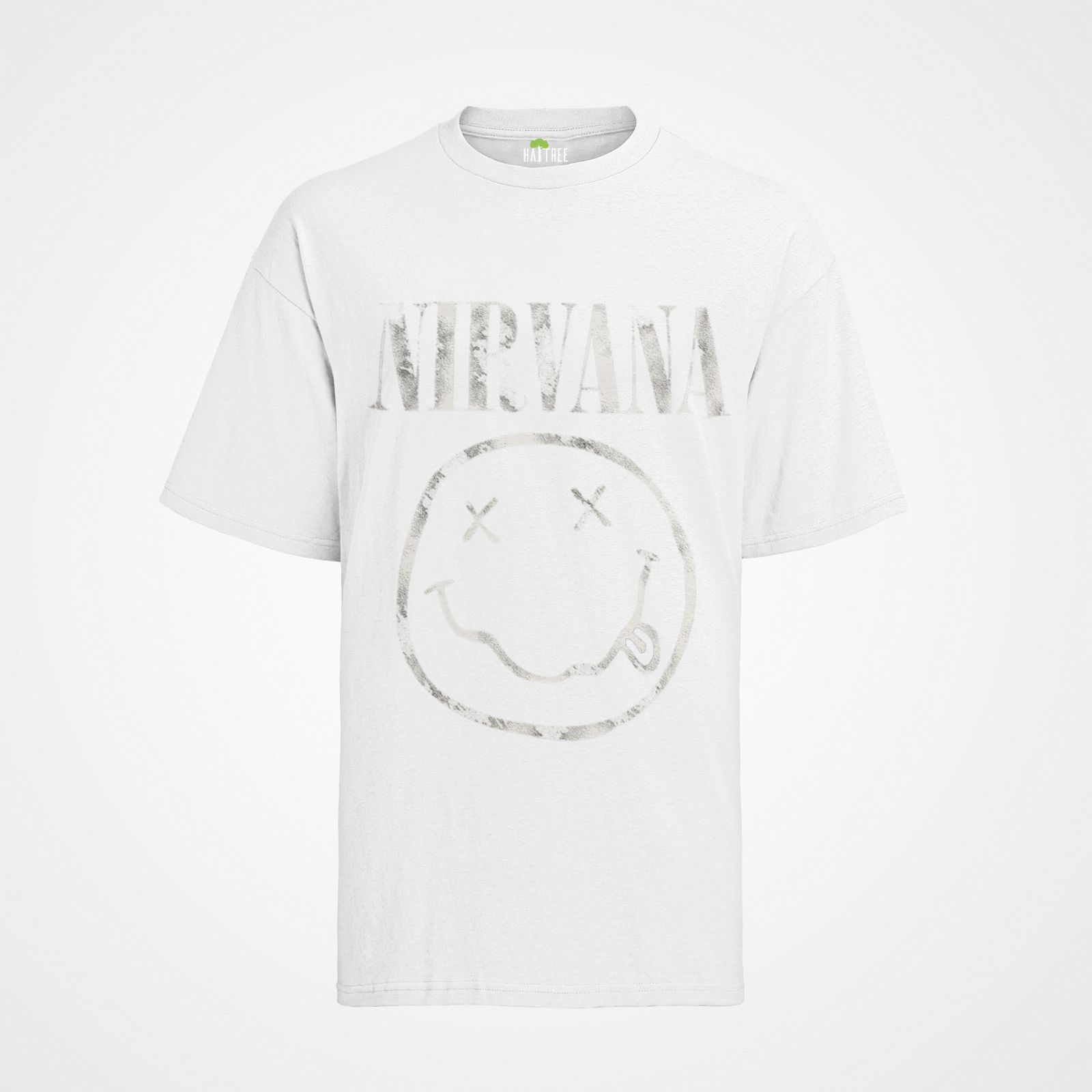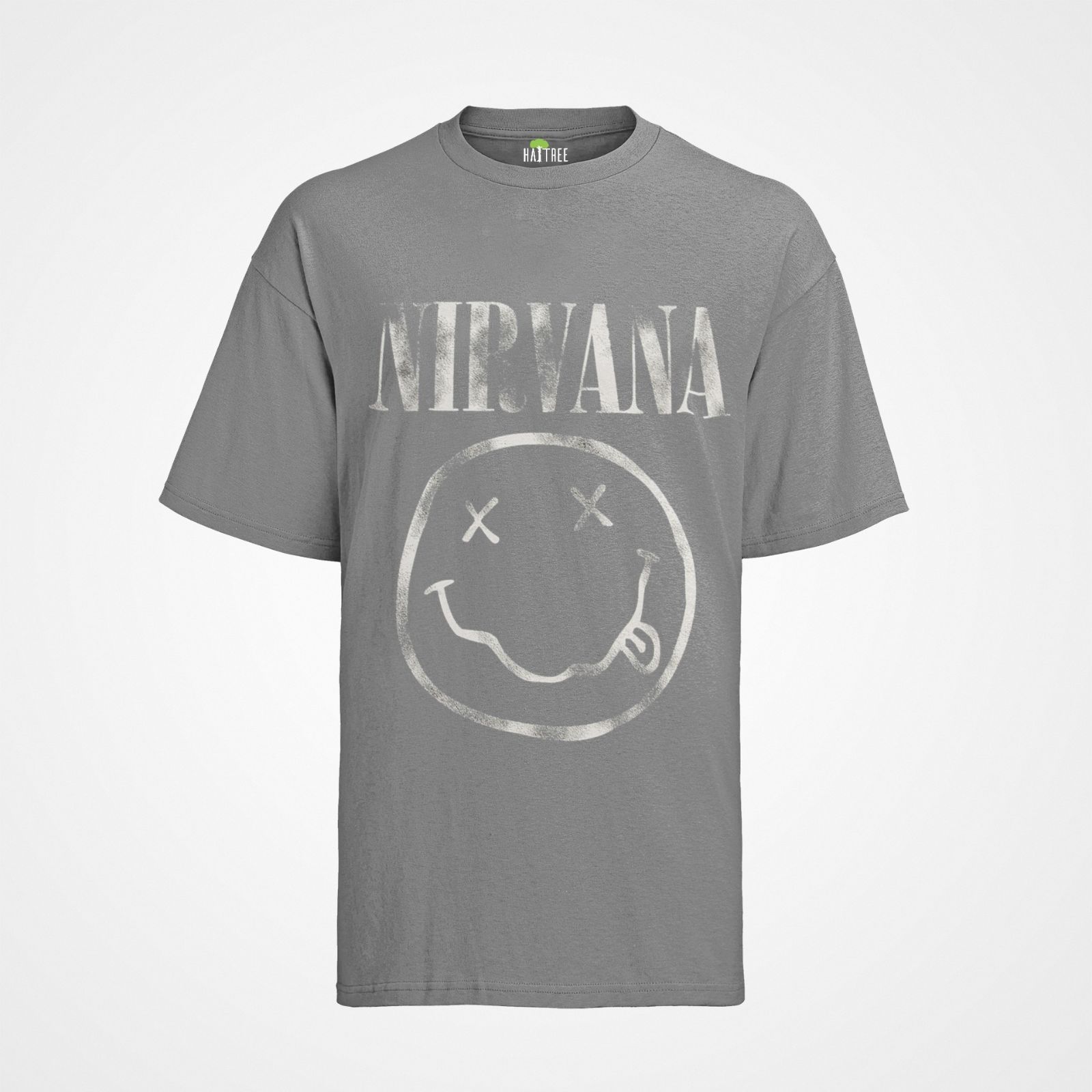 Damen Bio Oversize T-Shirt Nirvana Smaily Grau kurt cobain Band Rock Musik Party