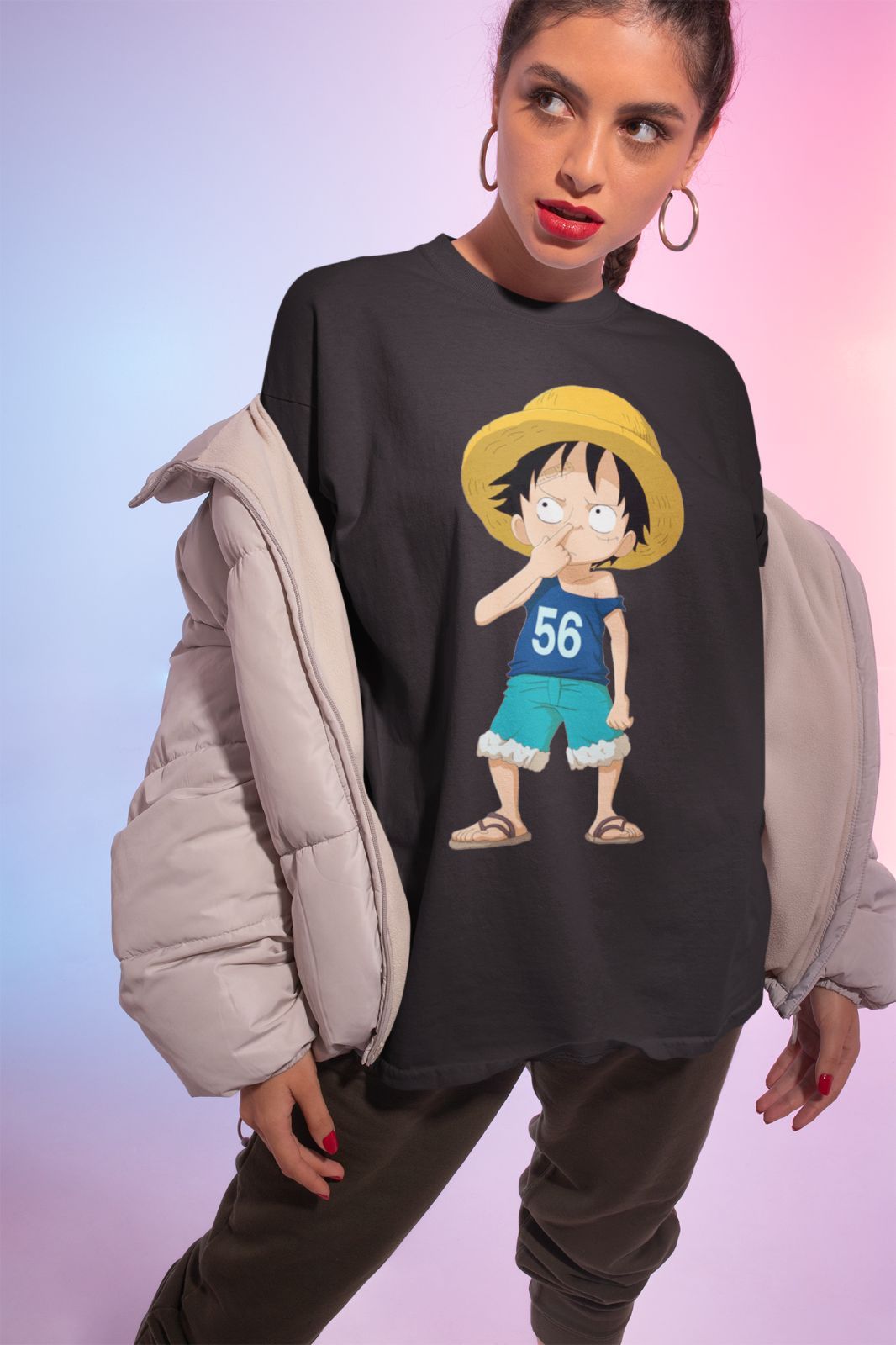 Damen Bio Oversize T-Shirt One Piece Ruffy Kid Luff Kind Anime Flagge Piraten