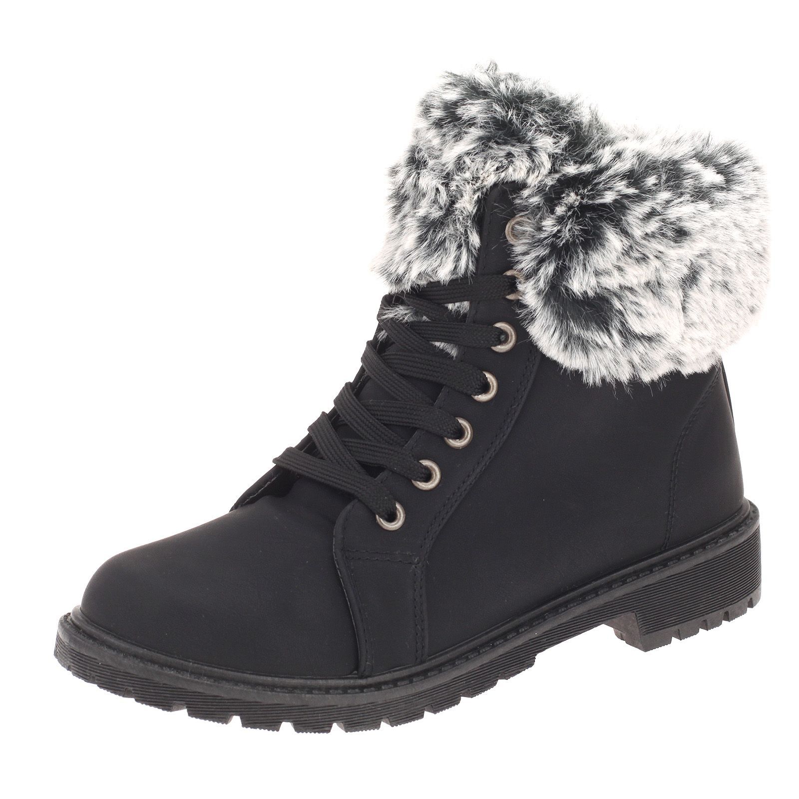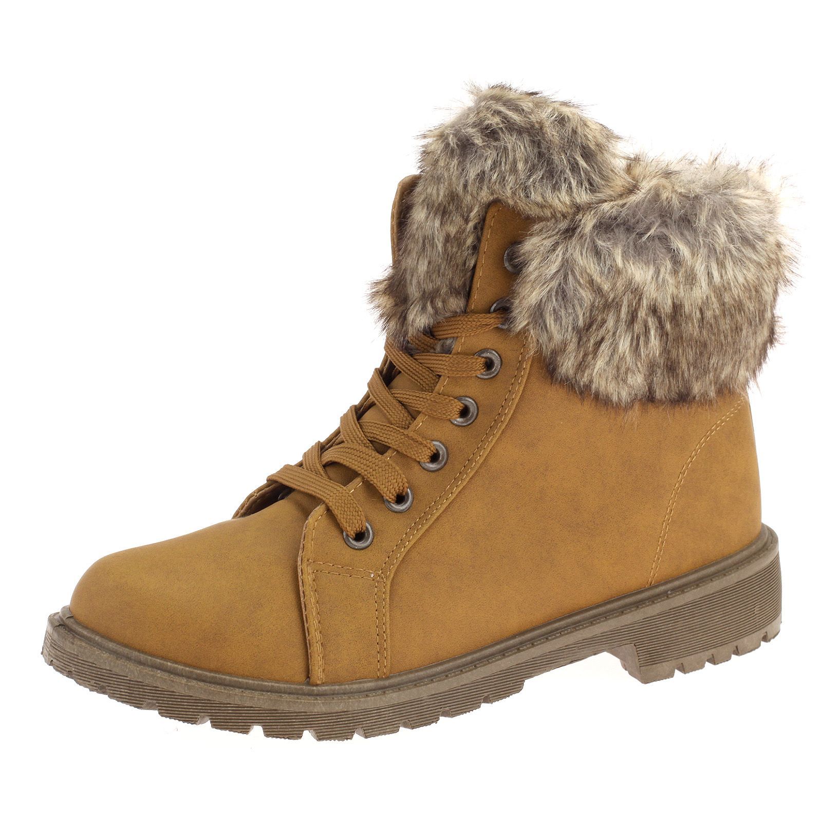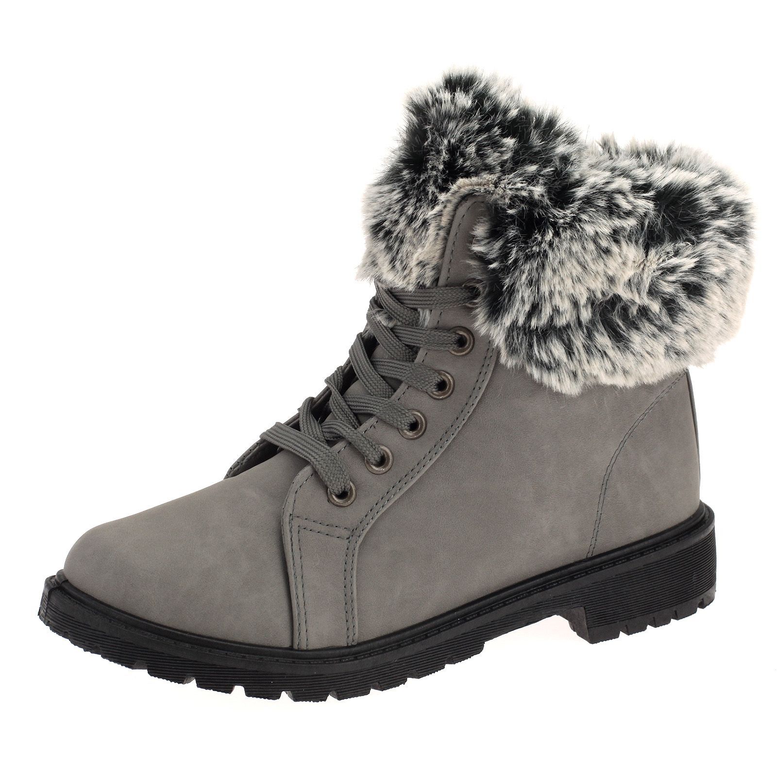 Damen Boots Stiefeletten Stiefel Schnür-Booty Winterstiefel Gefütterte Frauen Schuhe