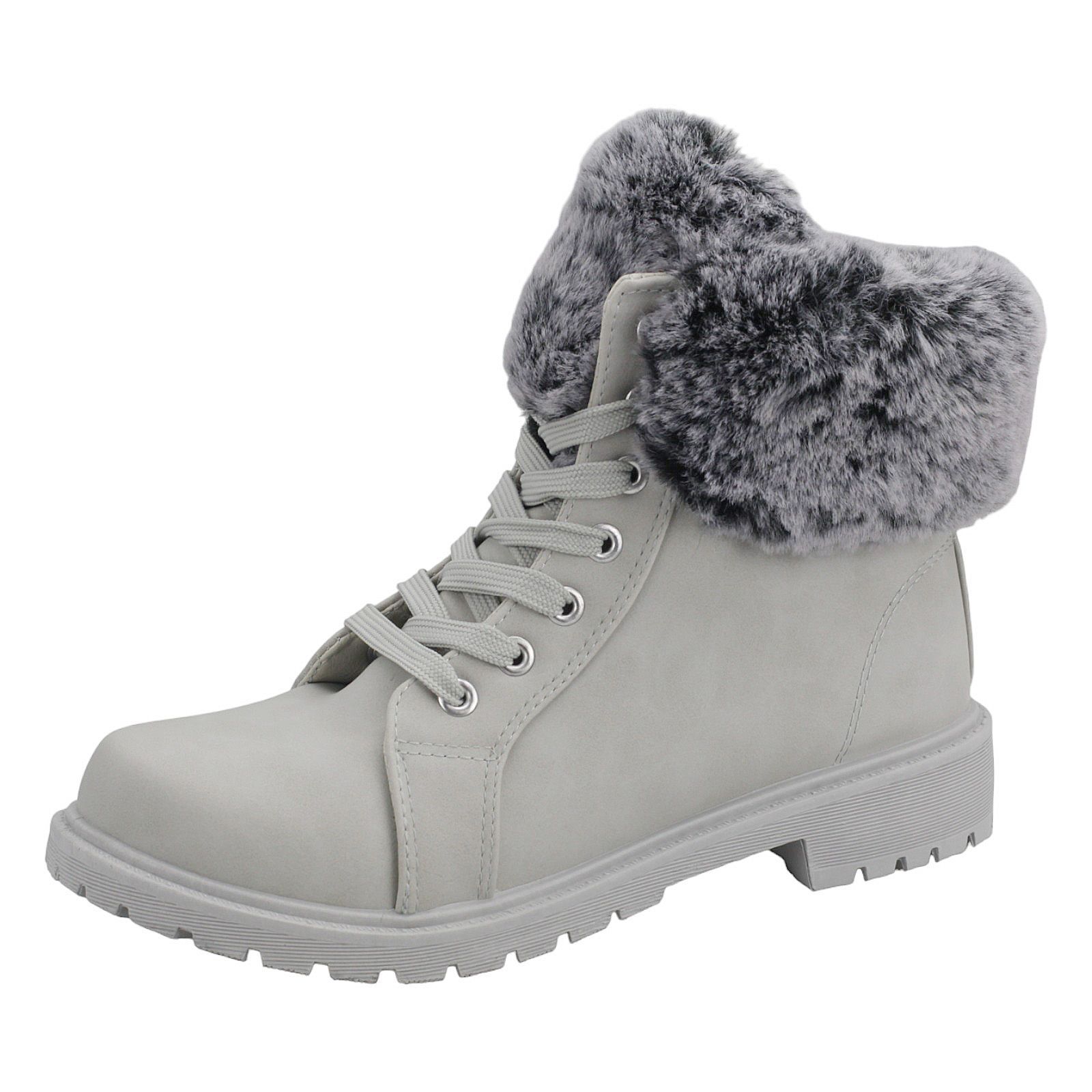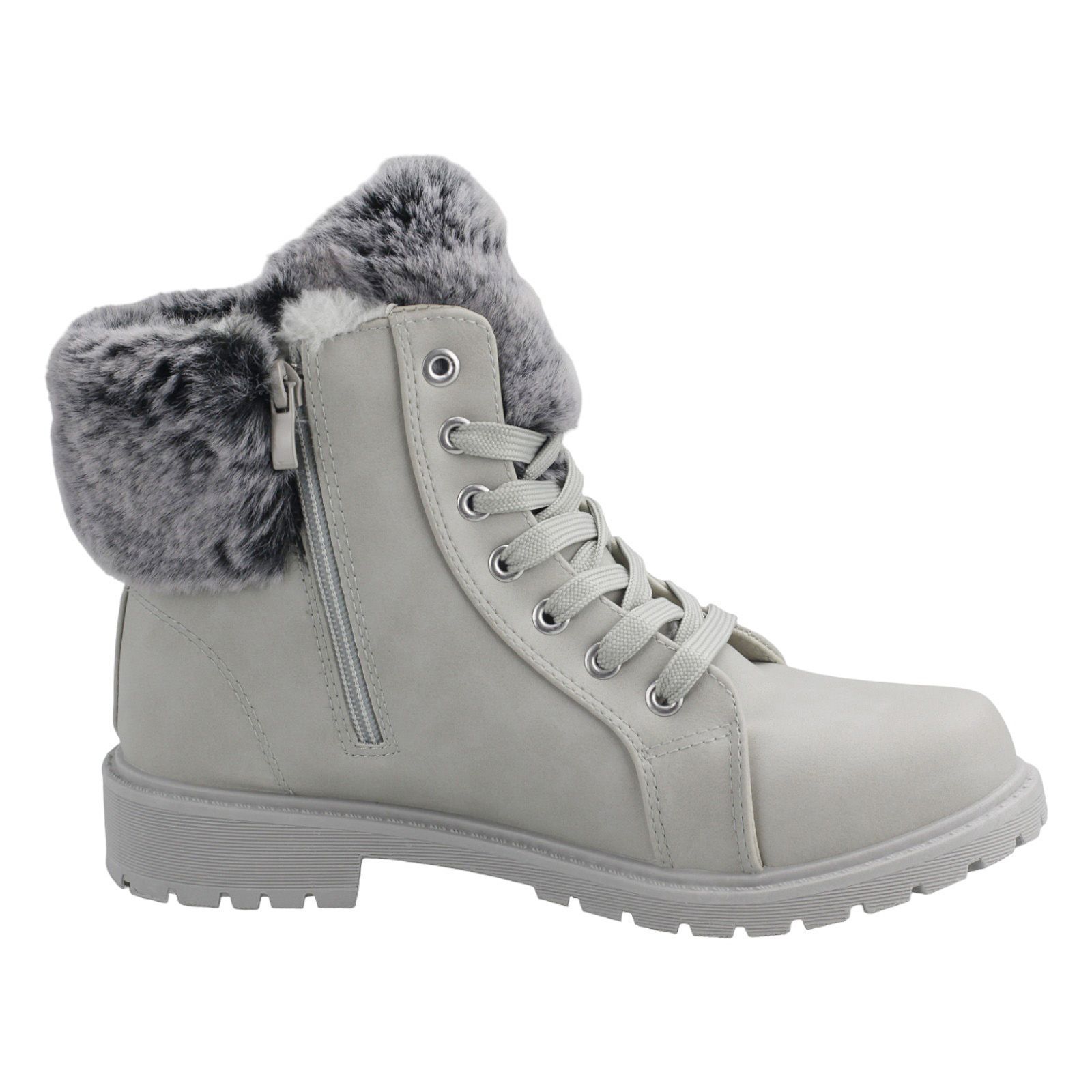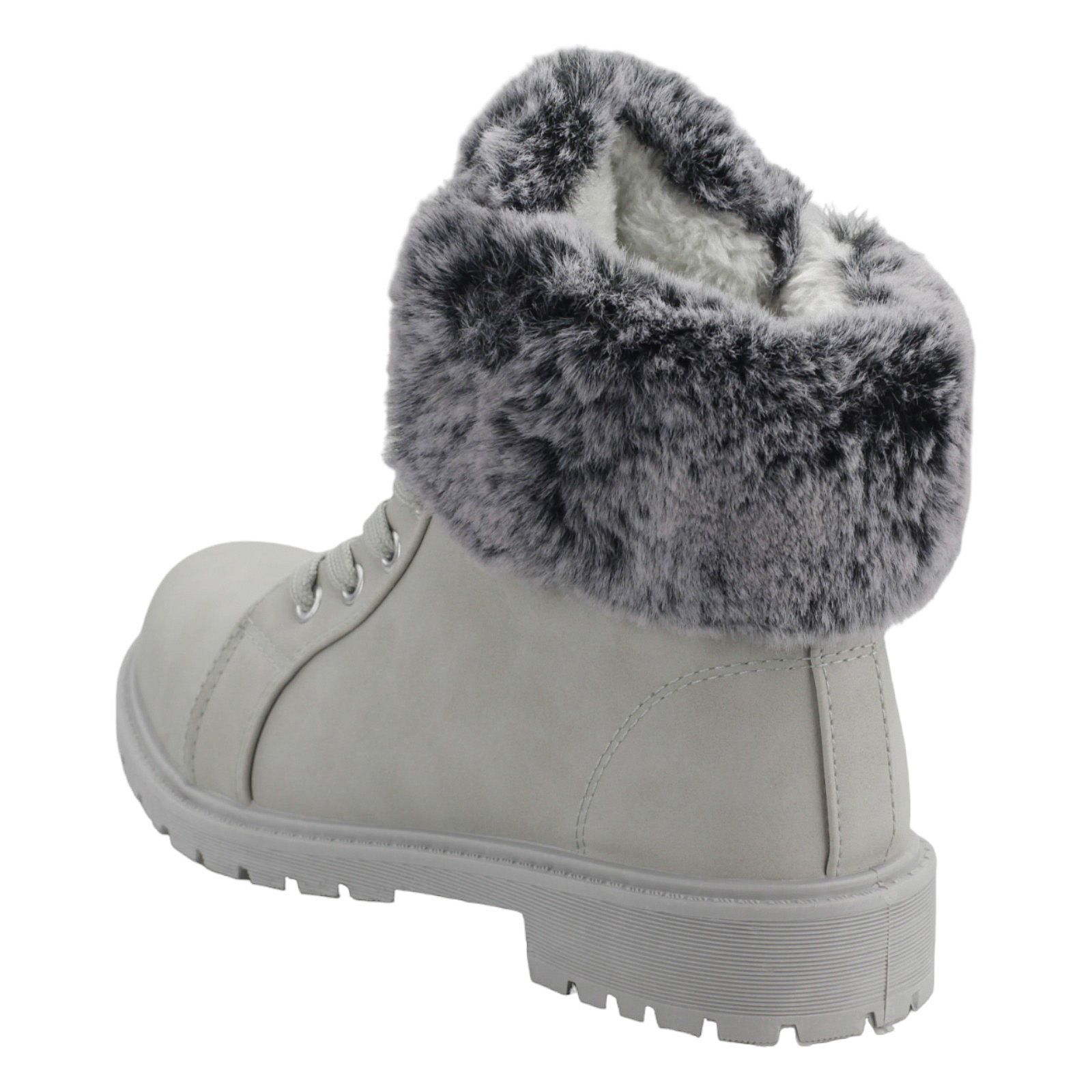 Damen Boots Stiefeletten Stiefel Schnür-Booty Winterstiefel Gefütterte Frauen Schuhe