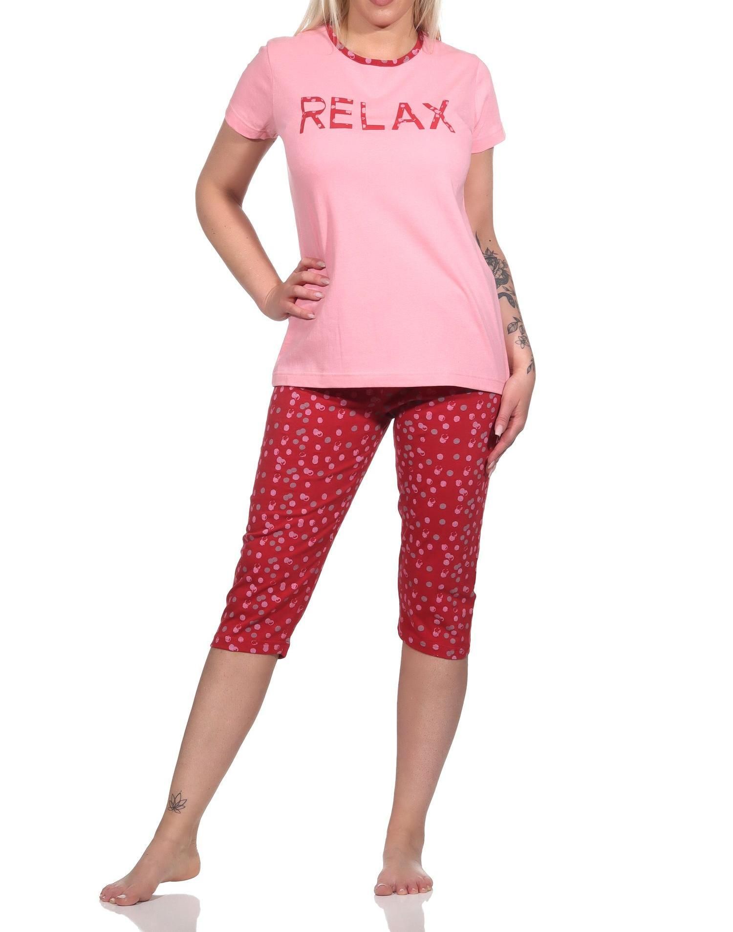 NORMANN Damen Capri Pyjama, lässiger Schlafanzug "RELAX" - 122 204 10 757