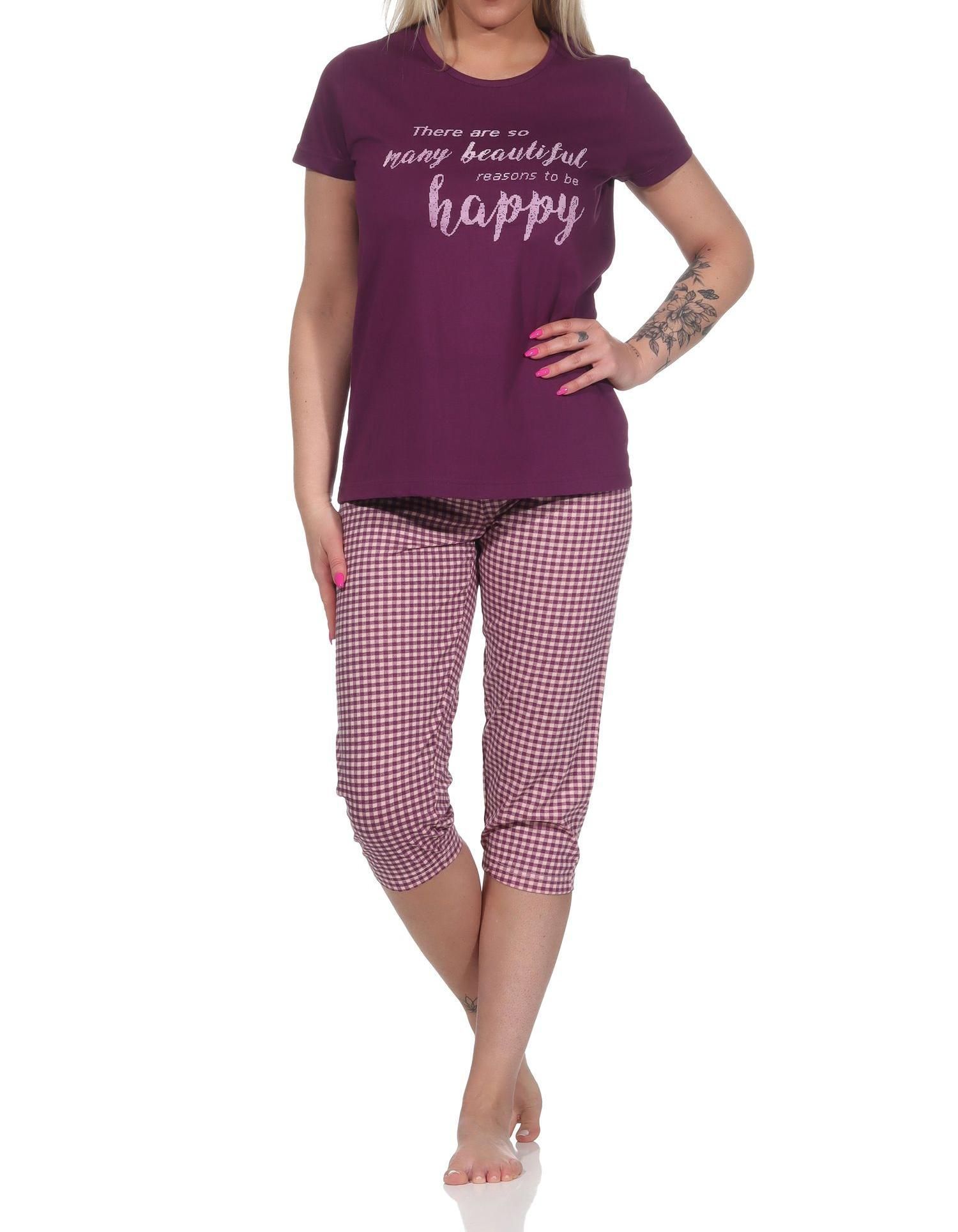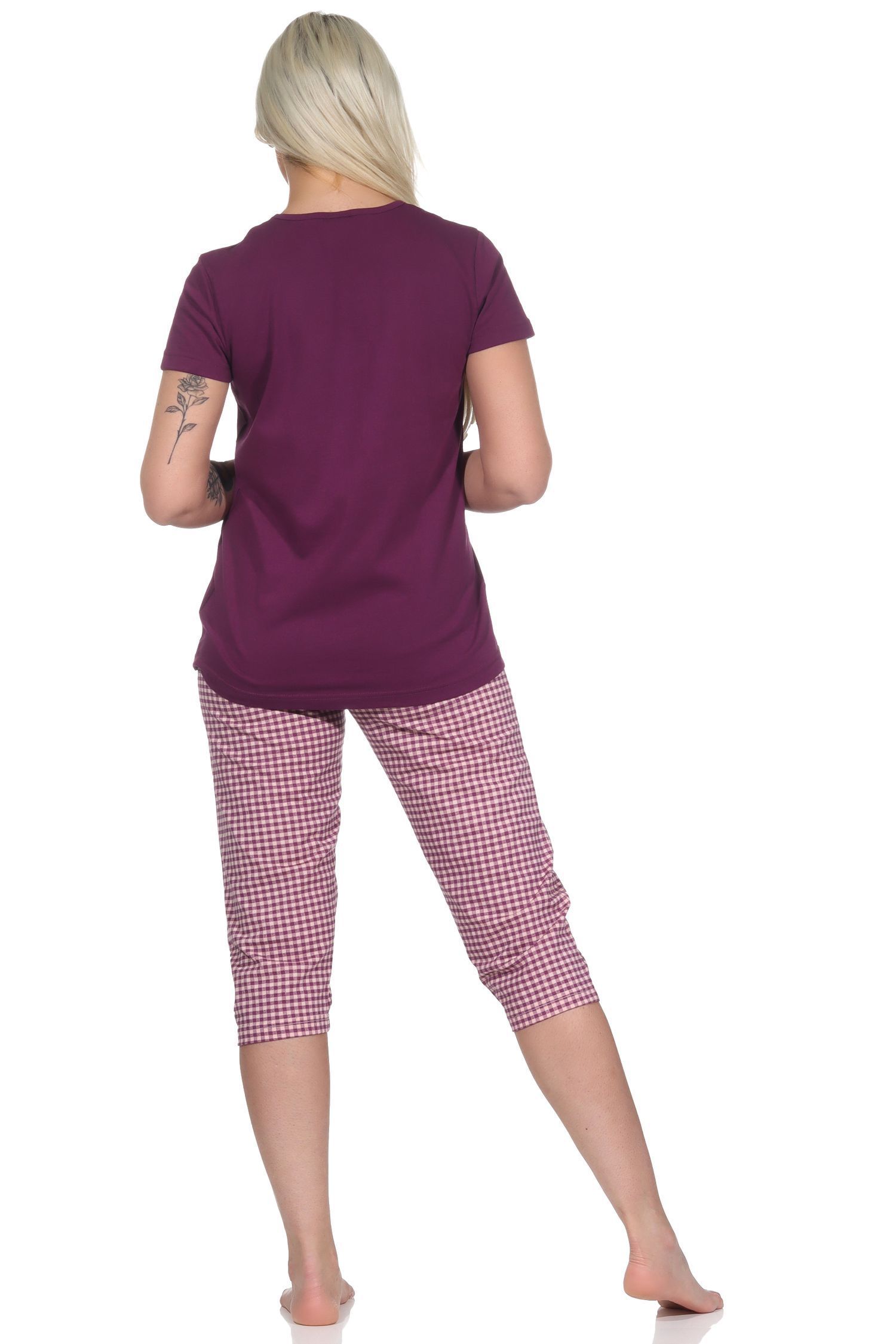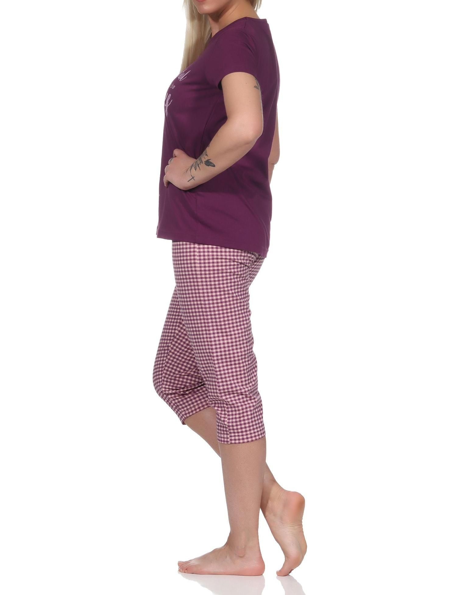 Damen Capri Pyjama, Schlafanzug mit Schriftzug und Karo-Hose - 112 204 10 734