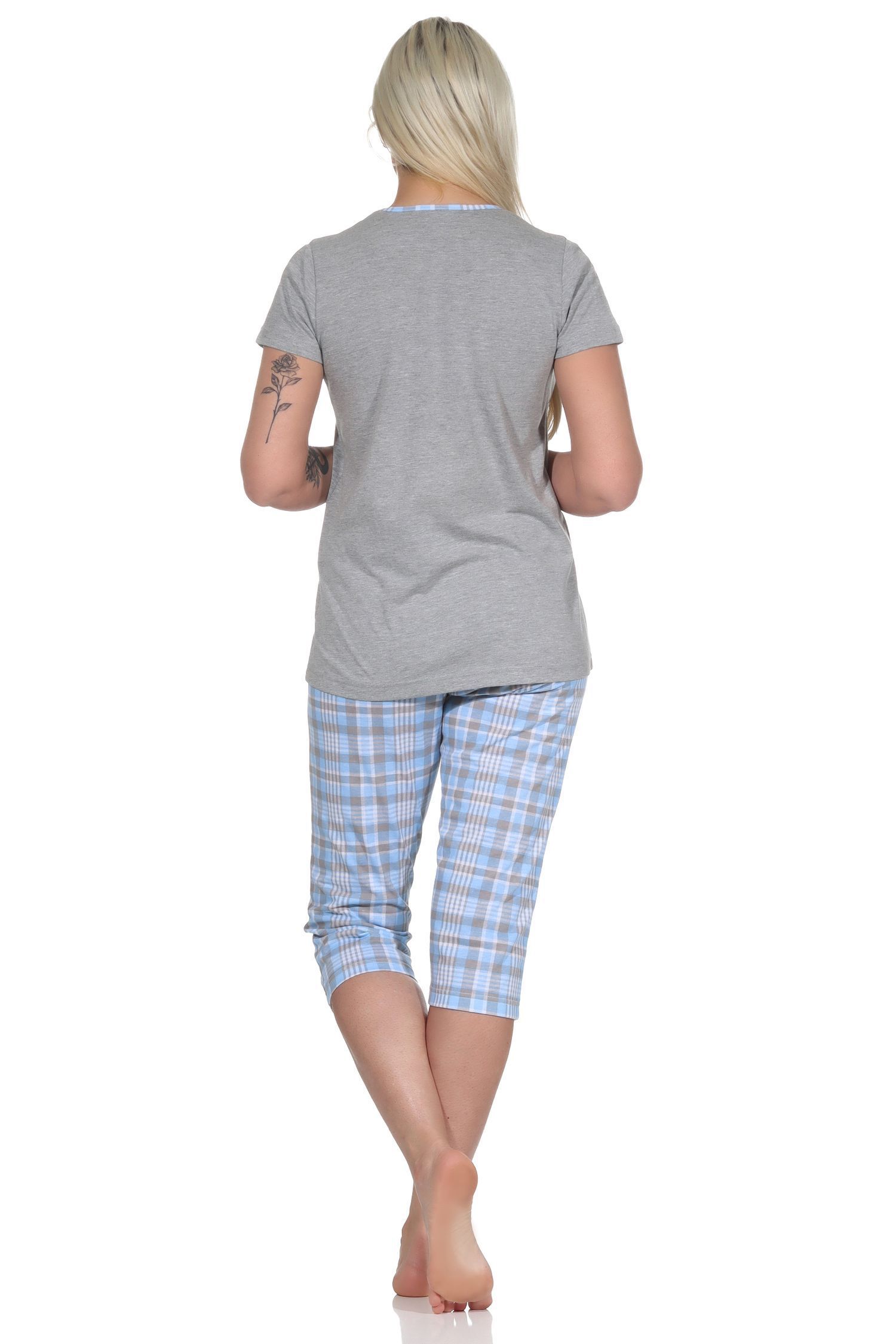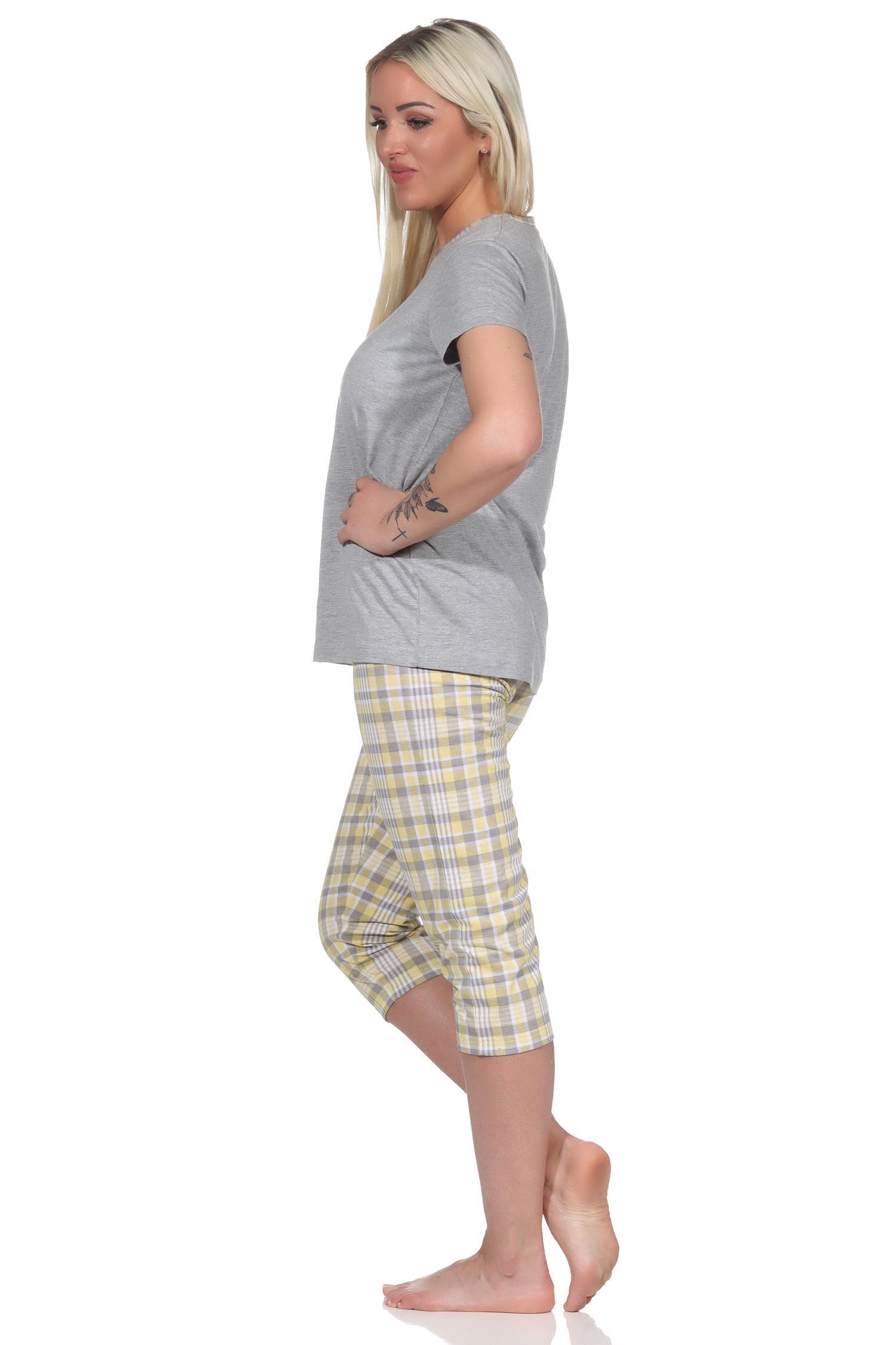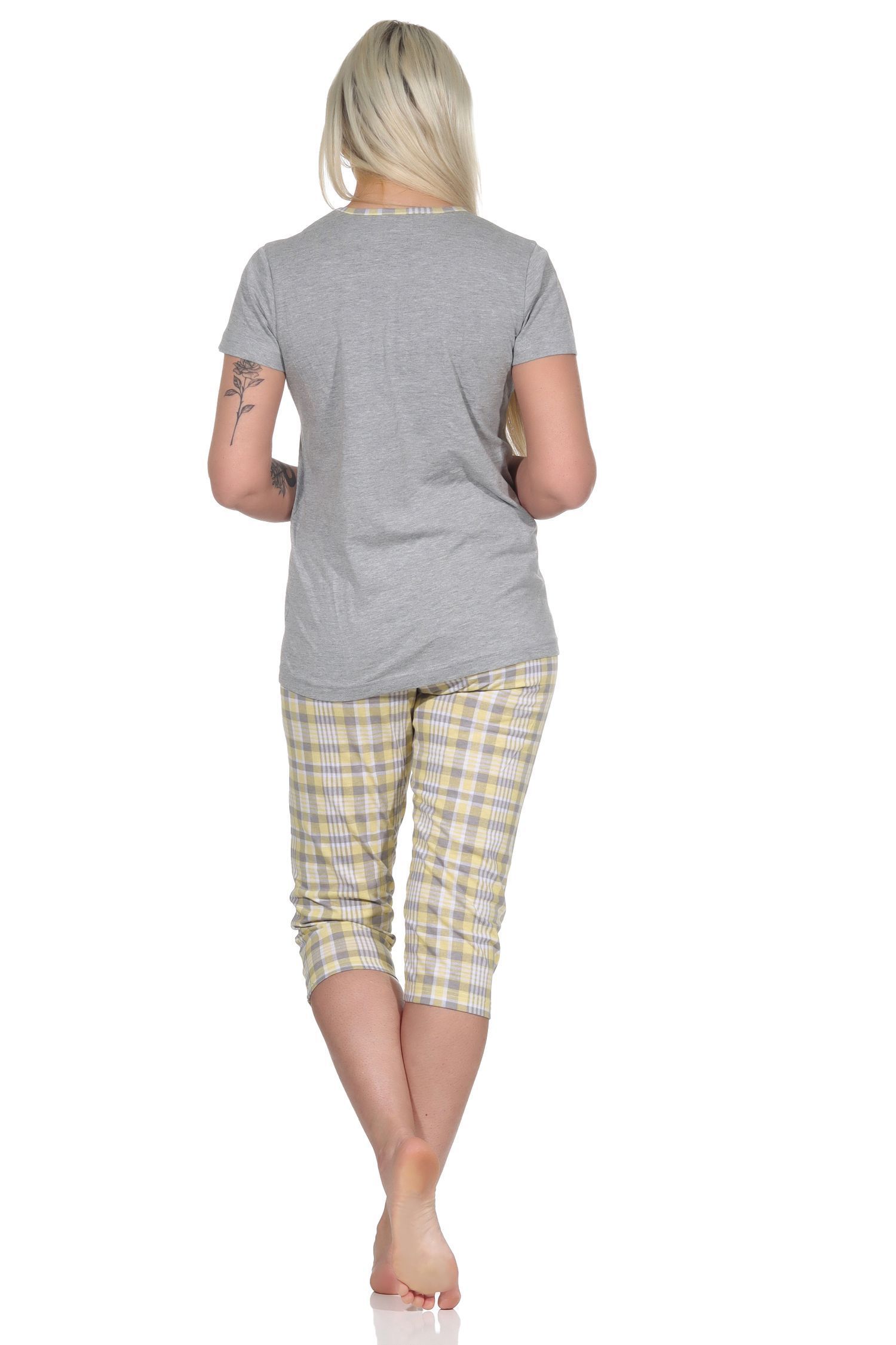 Damen Capri Schlafanzug Capri, Pyjama mit Front-Print und Karo Caprihose - 733