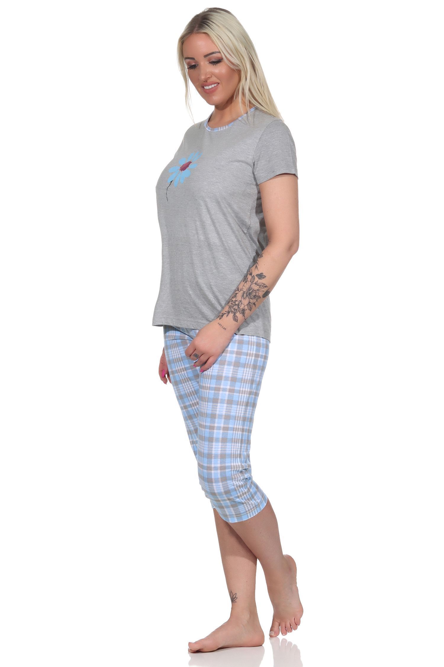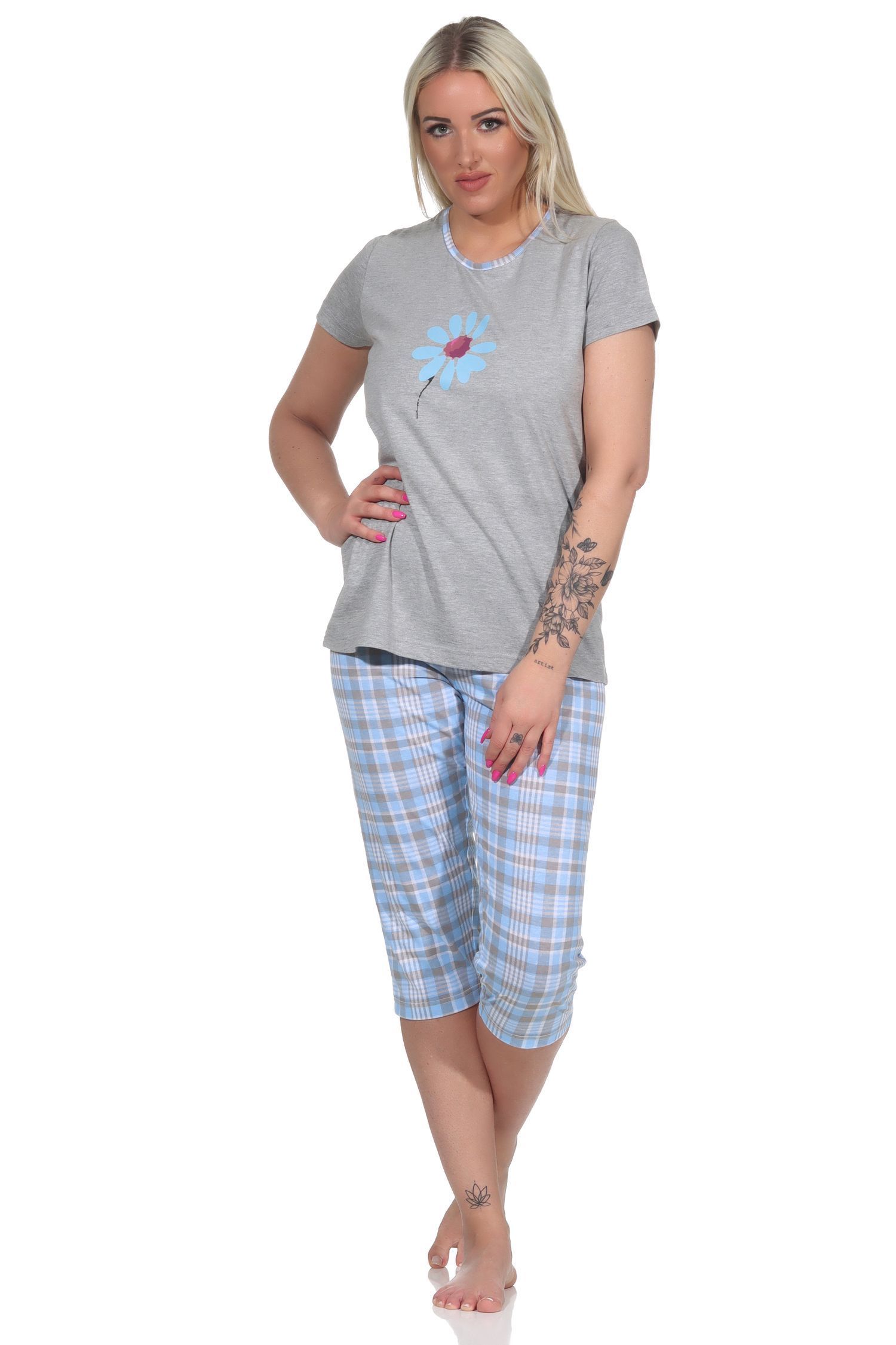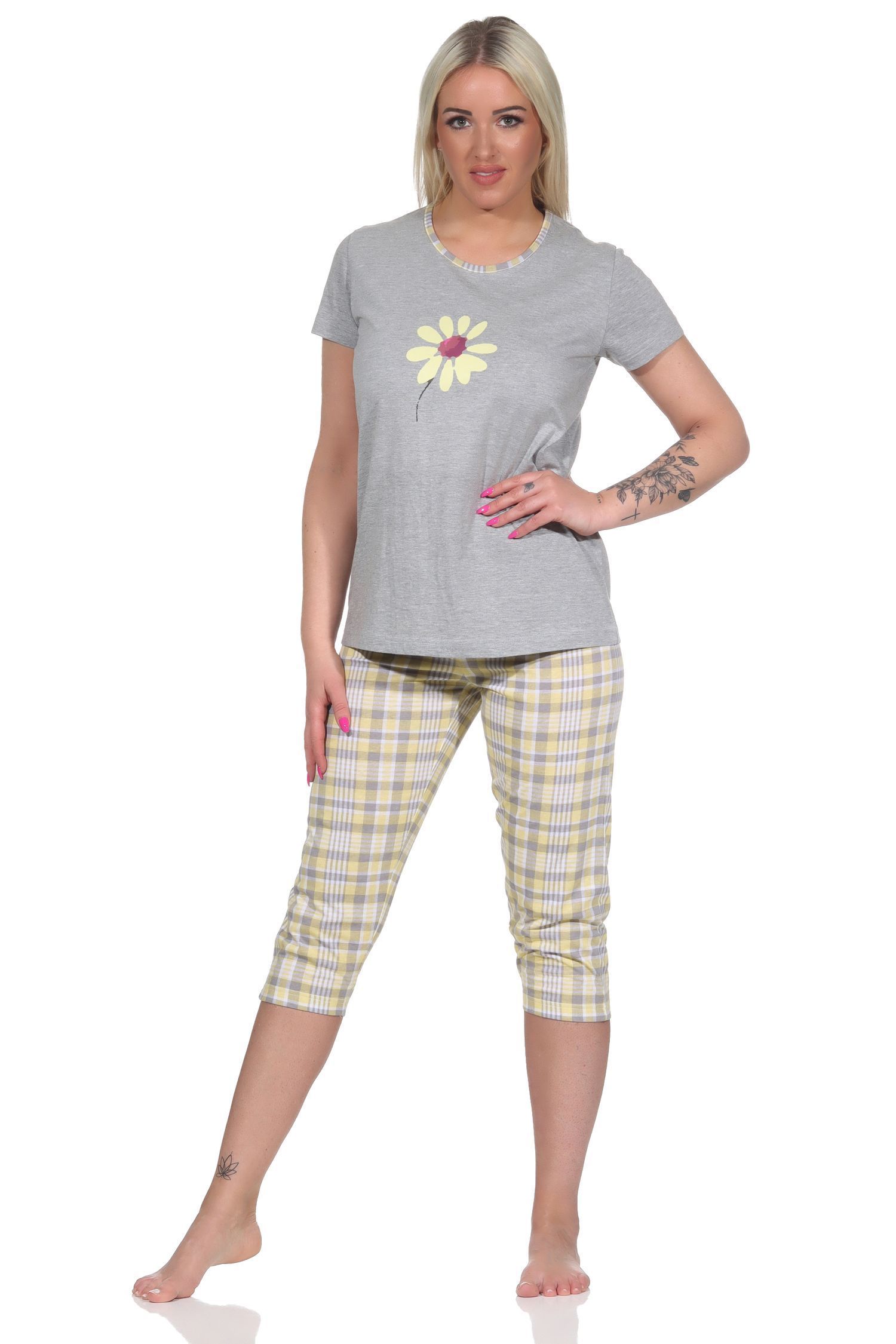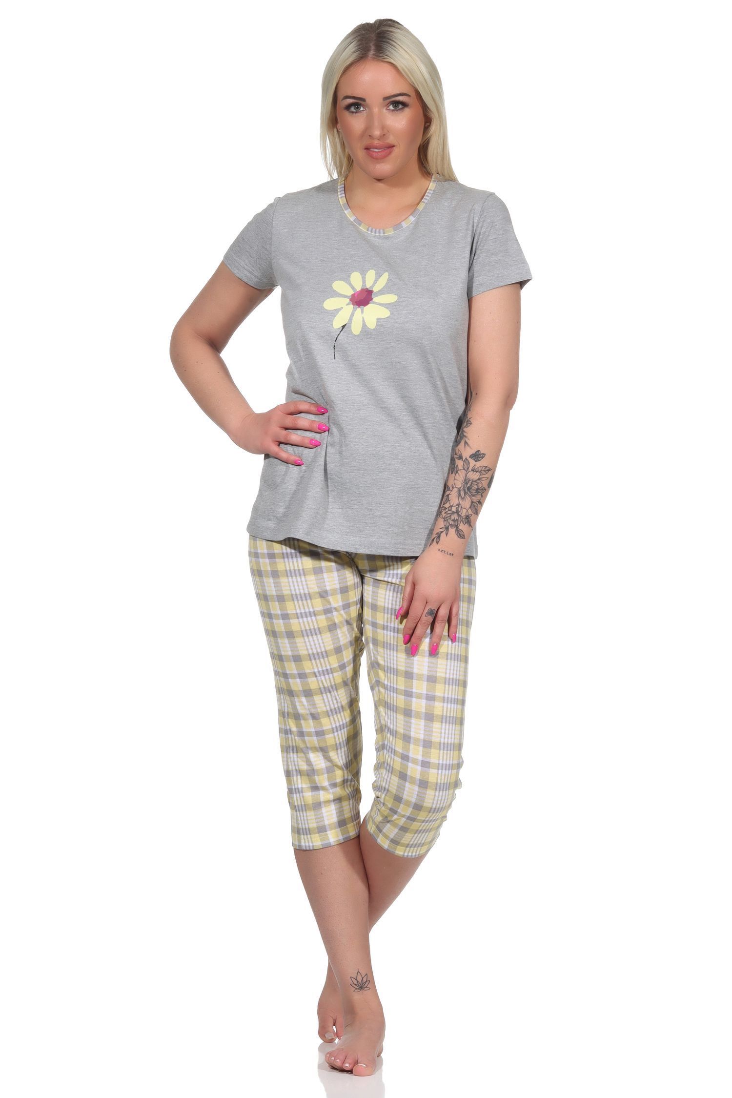Damen Capri Schlafanzug Capri, Pyjama mit Front-Print und Karo Caprihose - 733