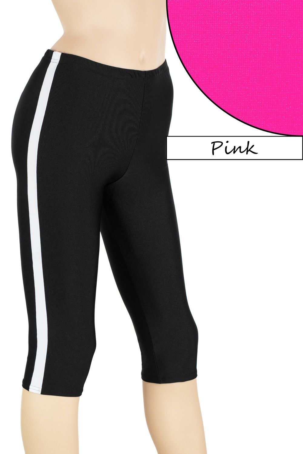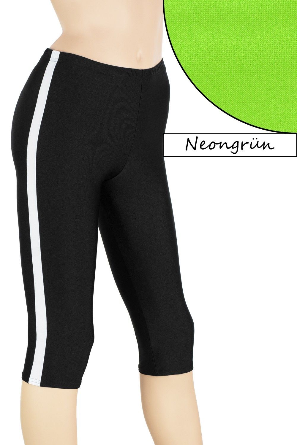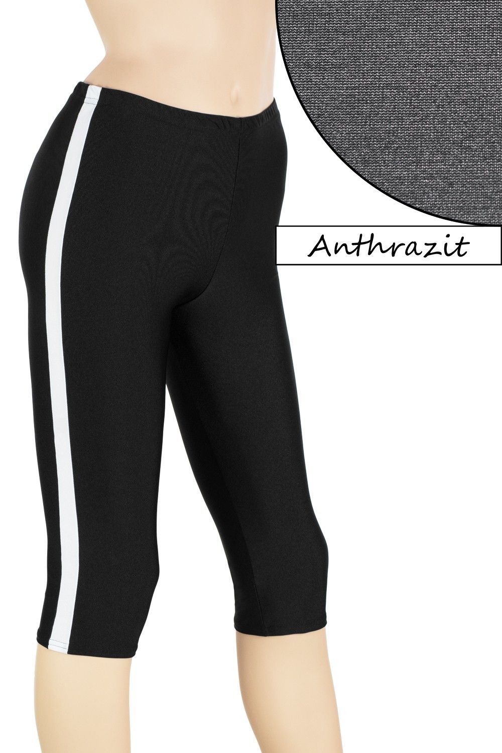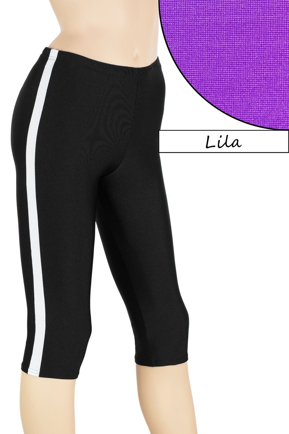 Damen Caprihose mit Galonstreifen 3/4 Sporthose stretch shiny Yoga Pants hauteng