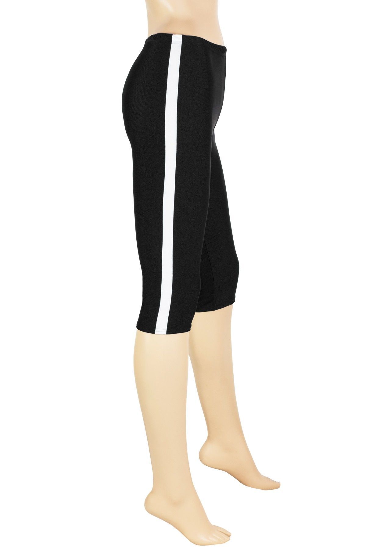 Damen Caprihose schwarz mit Galonstreifen in weiß Sporthose stretch shiny hauteng