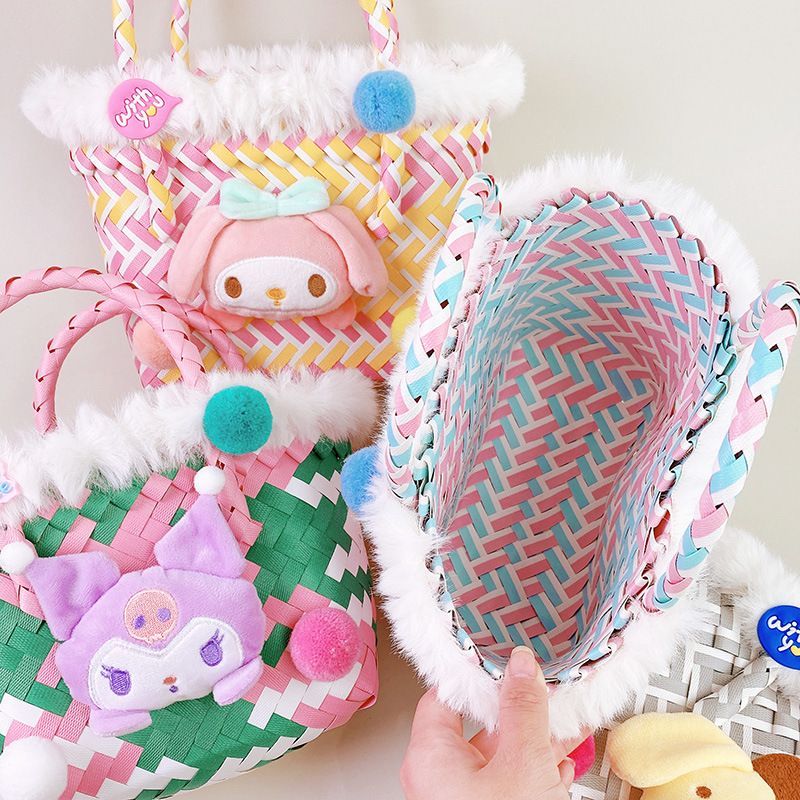 Damen Cinnamoroll Nylon Gewebte Melody Kuromi Einkaufskörbe Handtasche Korb