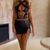 Damen-Club-Party-Abendkleid aus Lamé-Leder mit Tülldetails und Seil-gebundenem Rock