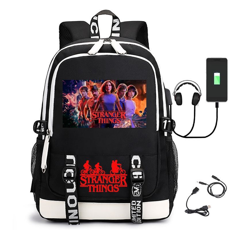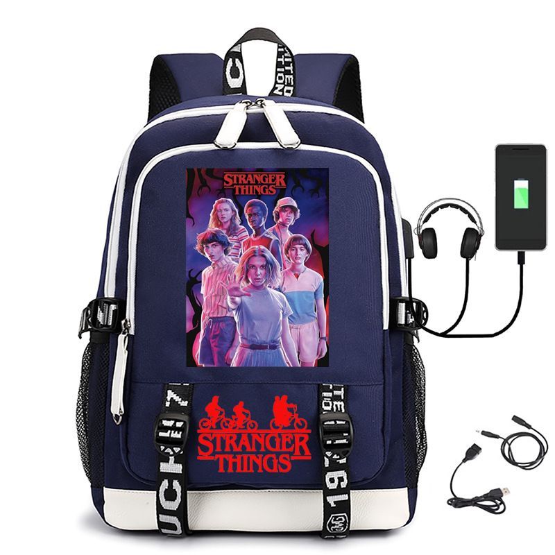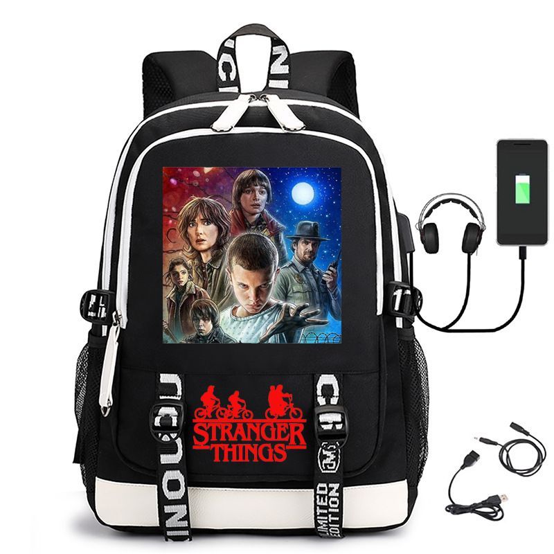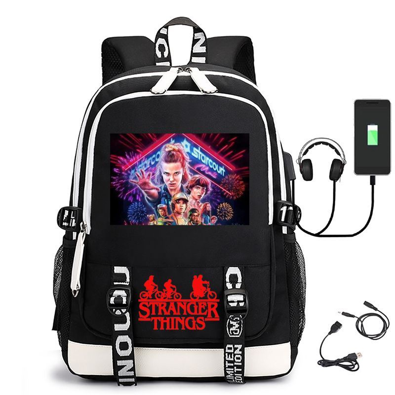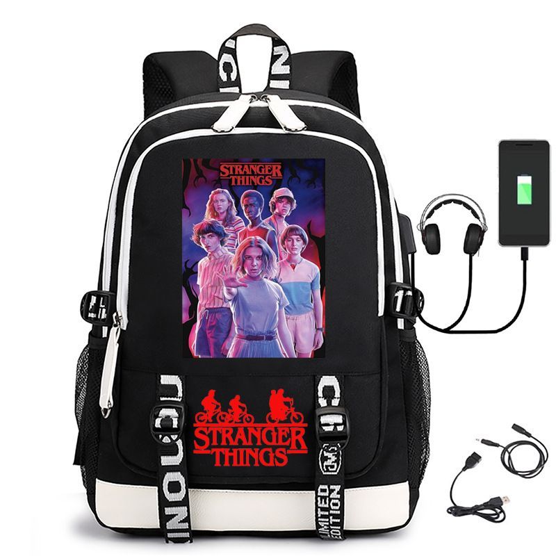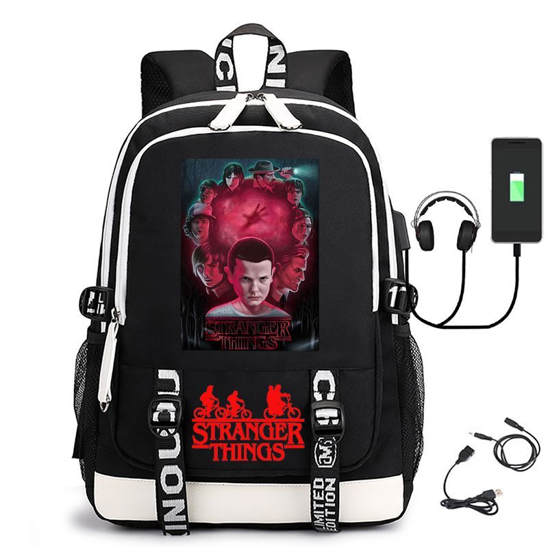 Damen Die Dach Stranger Things USB Rucksack Eleven Byers Schultasche 31x16x45cm