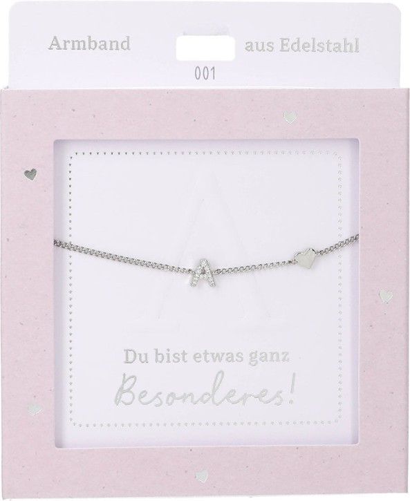 Damen Edelstahl Armband mit Herz-Anhaenger, 15-20cm Verstellbar-HAPPY Silber