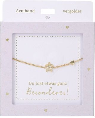 Damen Edelstahl Armband mit Herz-Anhaenger, 15-20cm Verstellbar-Kleeblatt Gold