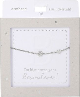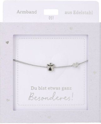 Damen Edelstahl Armband mit Herz-Anhaenger, 15-20cm Verstellbar-K Silber