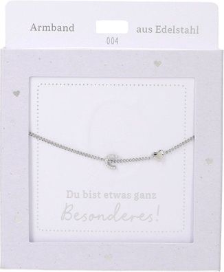 Damen Edelstahl Armband mit Herz-Anhaenger, 15-20cm Verstellbar-Stern Silber