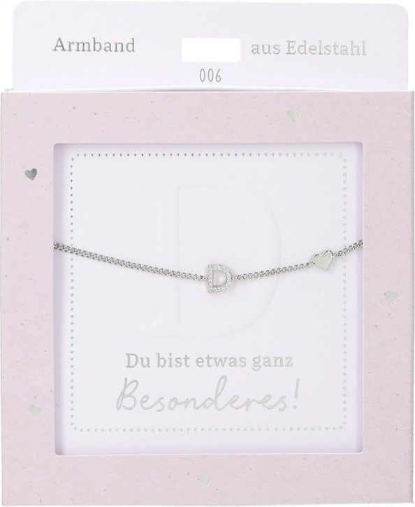 Damen Edelstahl Armband mit Herz-Anhaenger, 15-20cm Verstellbar-D Silber