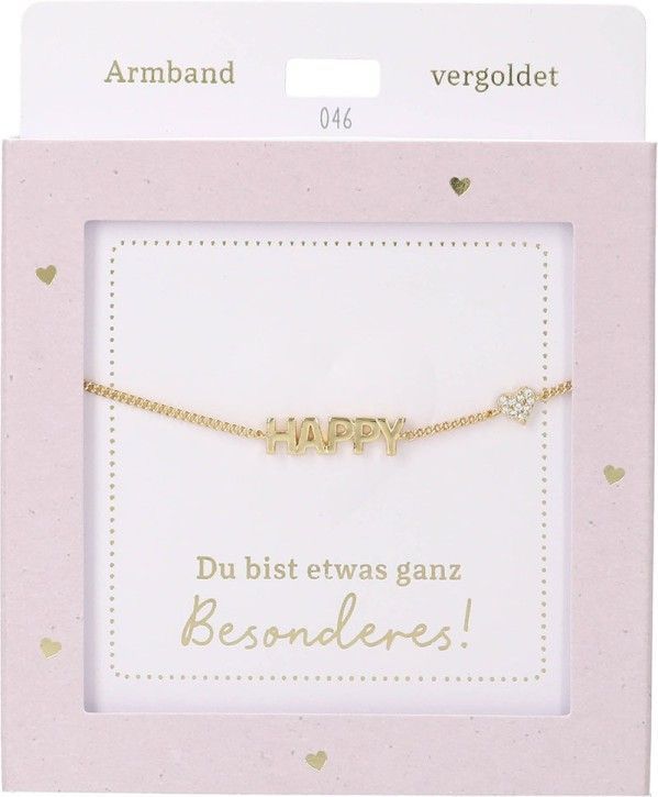Damen Edelstahl Armband mit Herz-Anhaenger, 15-20cm Verstellbar-HAPPY Gold
