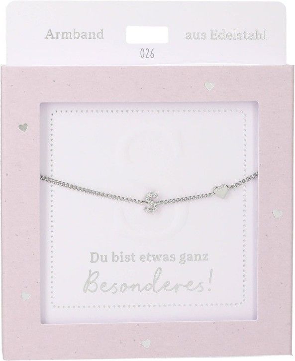 Damen Edelstahl Armband mit Herz-Anhaenger, 15-20cm Verstellbar-S Silber
