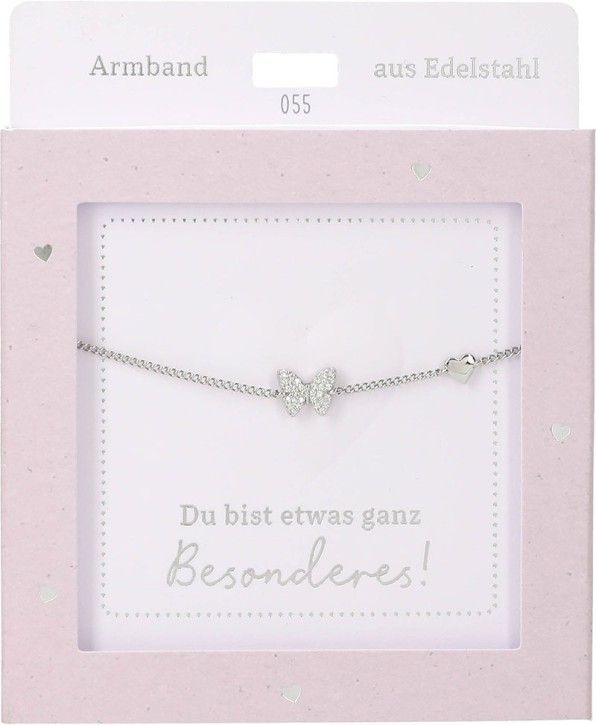 Damen Edelstahl Armband mit Herz-Anhaenger, 15-20cm Verstellbar-Schmetterling Silber