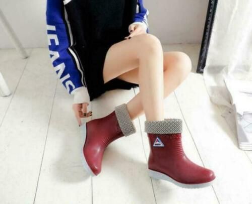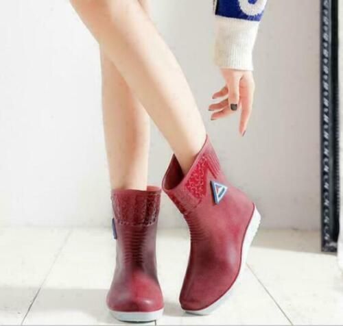 Damen flache Regenstiefel Chelsea Stiefeletten bequeme Schuhe British N1