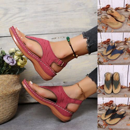 Damen Flip-Flop Keil Sandalen Dame Atmungsaktiv Sommer Offener Zeh Schuhe Strand
