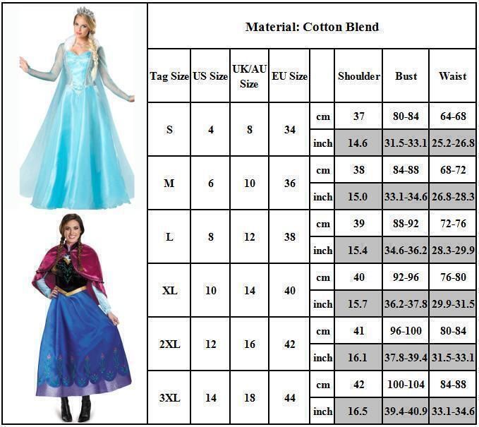 Damen Frozen Prinzessin Elsa Anna Party Kleider Fasching Karneval Cosplay Kostum