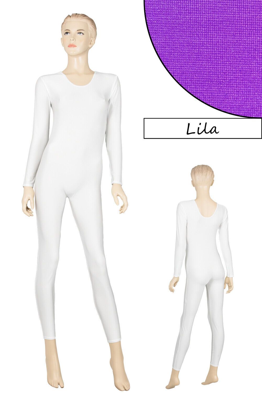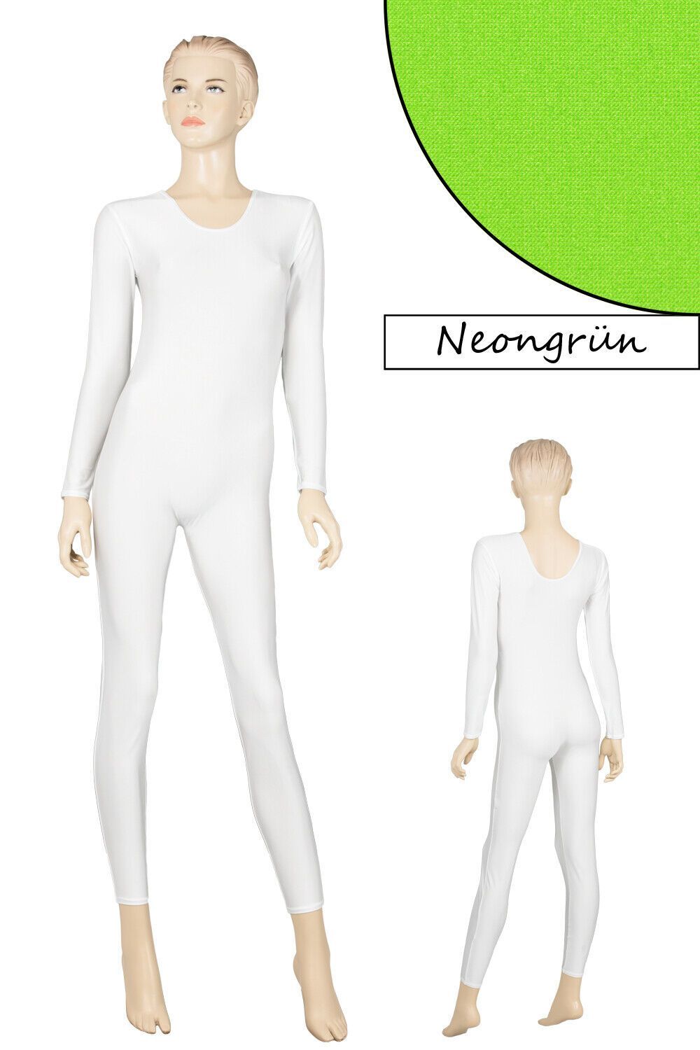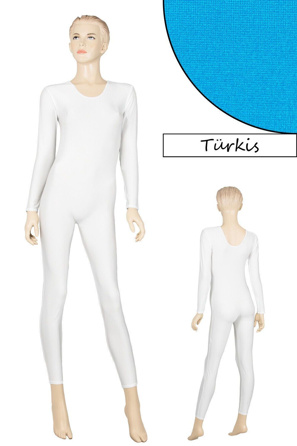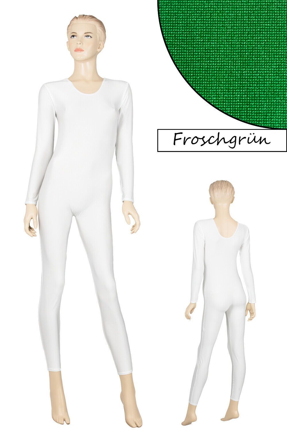 Damen Ganzanzug, lange Ärmel und Beine, mit Rundhalsausschnitt. Material: 80% Polyamid, 20% Elasthan. Hoch elastisch und glänzend. Made in Germany, by us – ML-Sport24!
