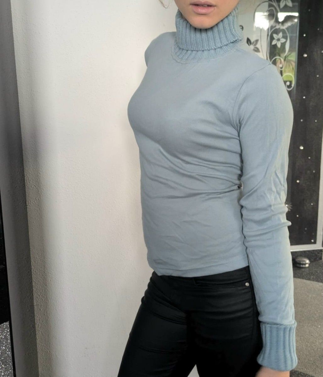 Damen Girly Rollkragen Pulli Sweatshirt Strick Abschlüsse 36 38 40 42 Rauchblau