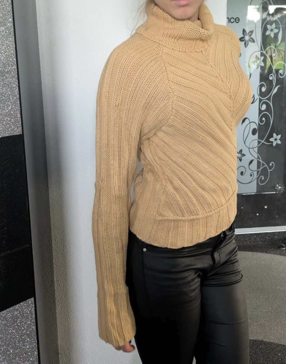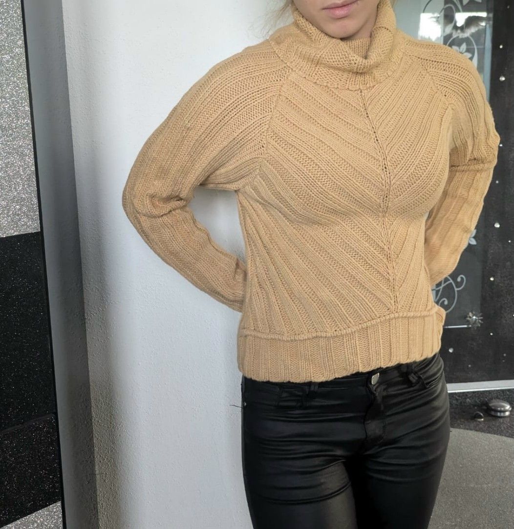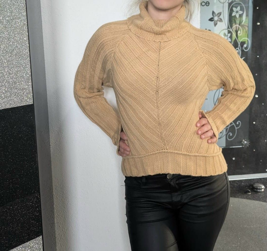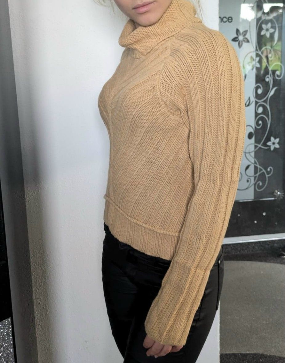 Damen Girly Winter Rollkragen Pulli Pullover Ripp Strick 40 Neu caramel