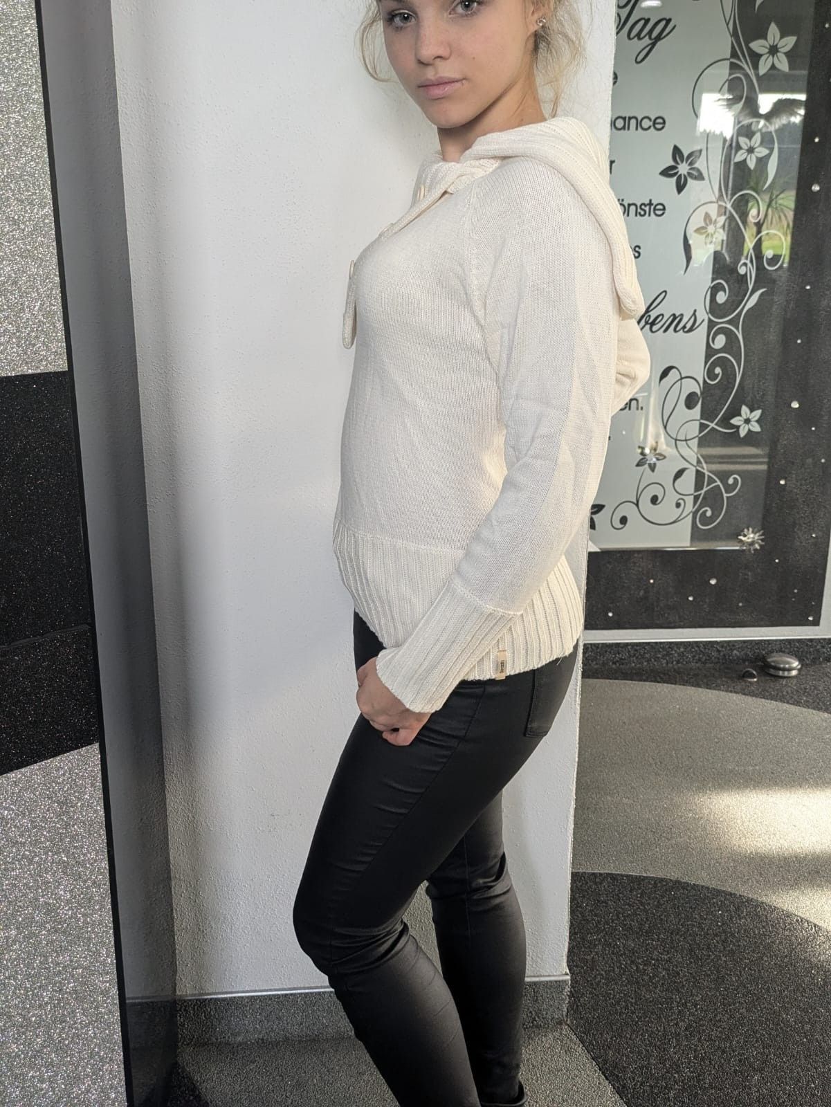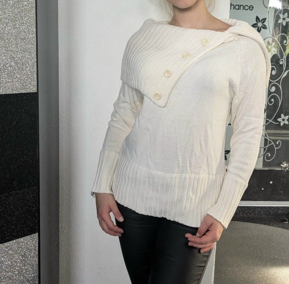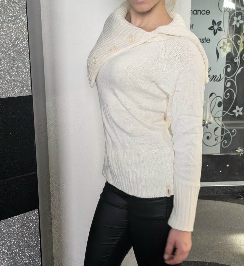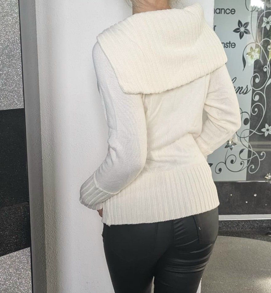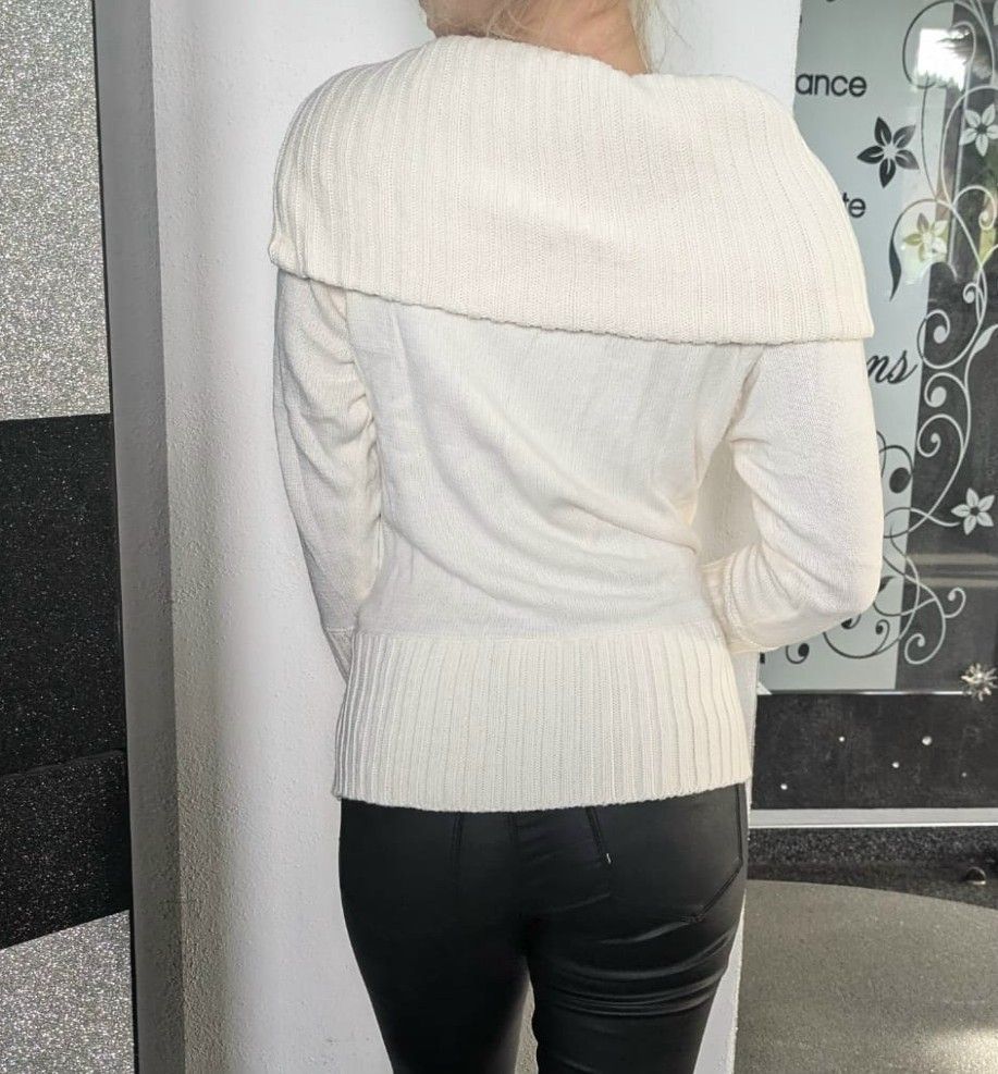 Damen Girly Winter Schalkragen Pulli Pullover Strick Neu cremebeige 36/38 40/42