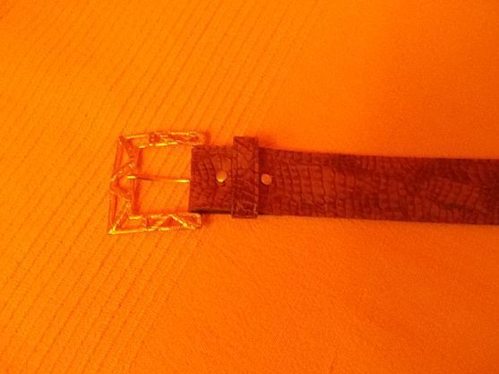 Damen Gürtel in Kroko Muster Metallschnalle , Gürtelmaterial = Kunstleder Euro Länge über alles = 93 cm Breite = 4 cm 7 Löcher vorgegeben Gepflegtes Teil,ohne Mängel.Es muß nur mal was NEUES her ! Siehe auch das Bild,es ist Teil der Artikelbeschreibung. Versandrabatt mit anderen Artikeln wird angebo