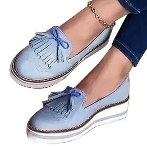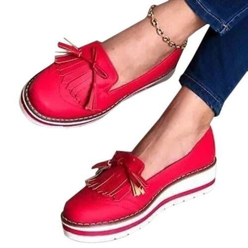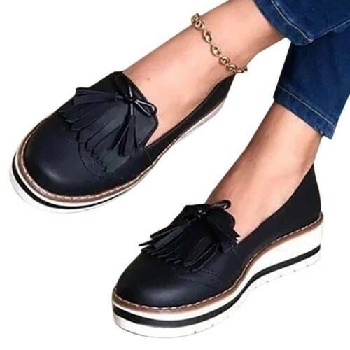 Damen Halbschuhe Slipper Ballerina Loafer Slip On Mokassins Quaste Plateauschuhe