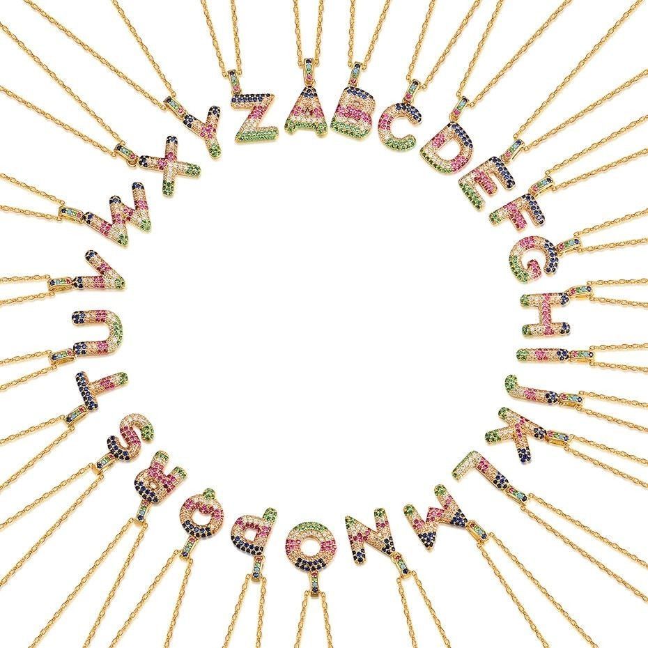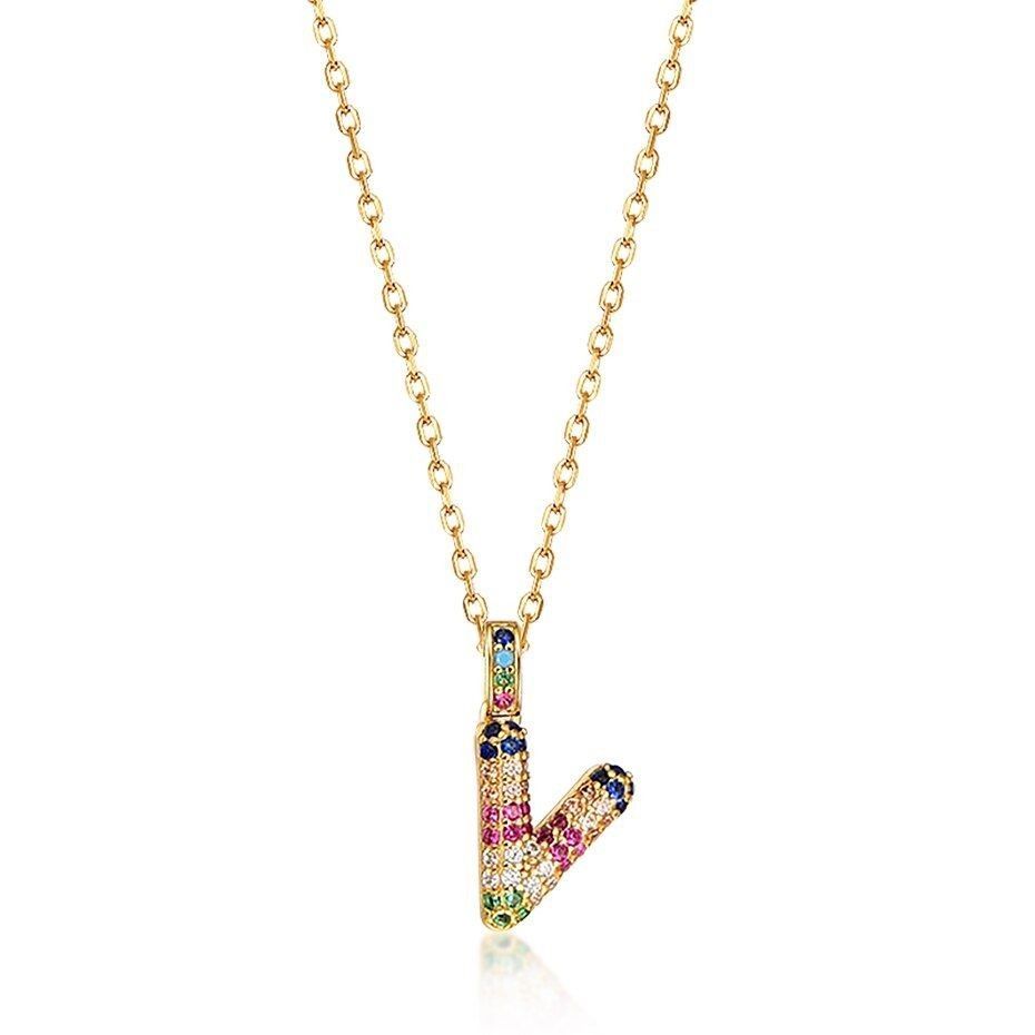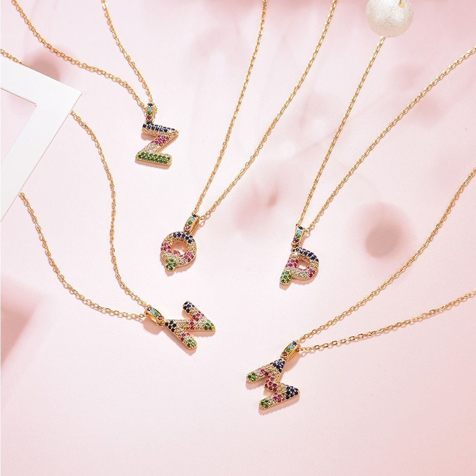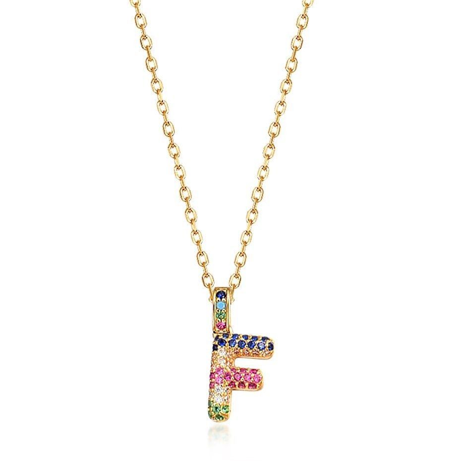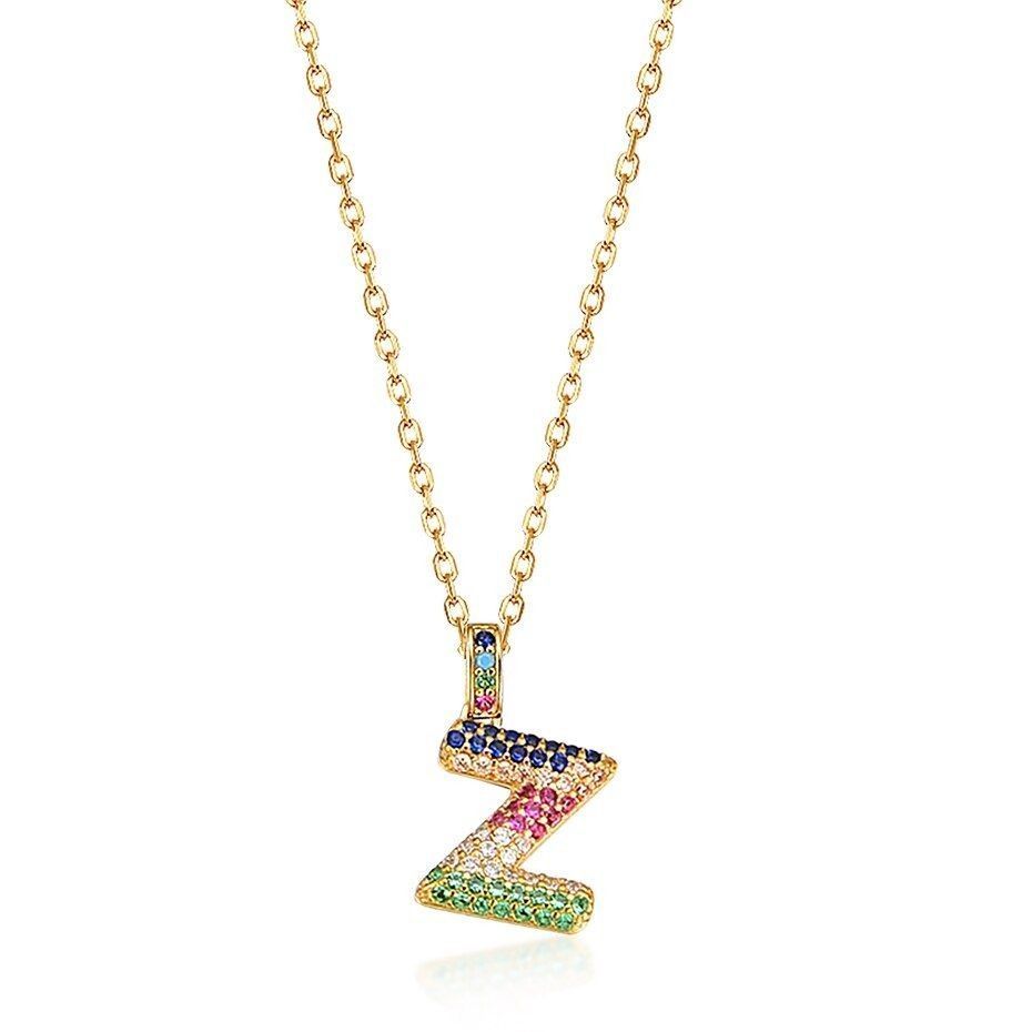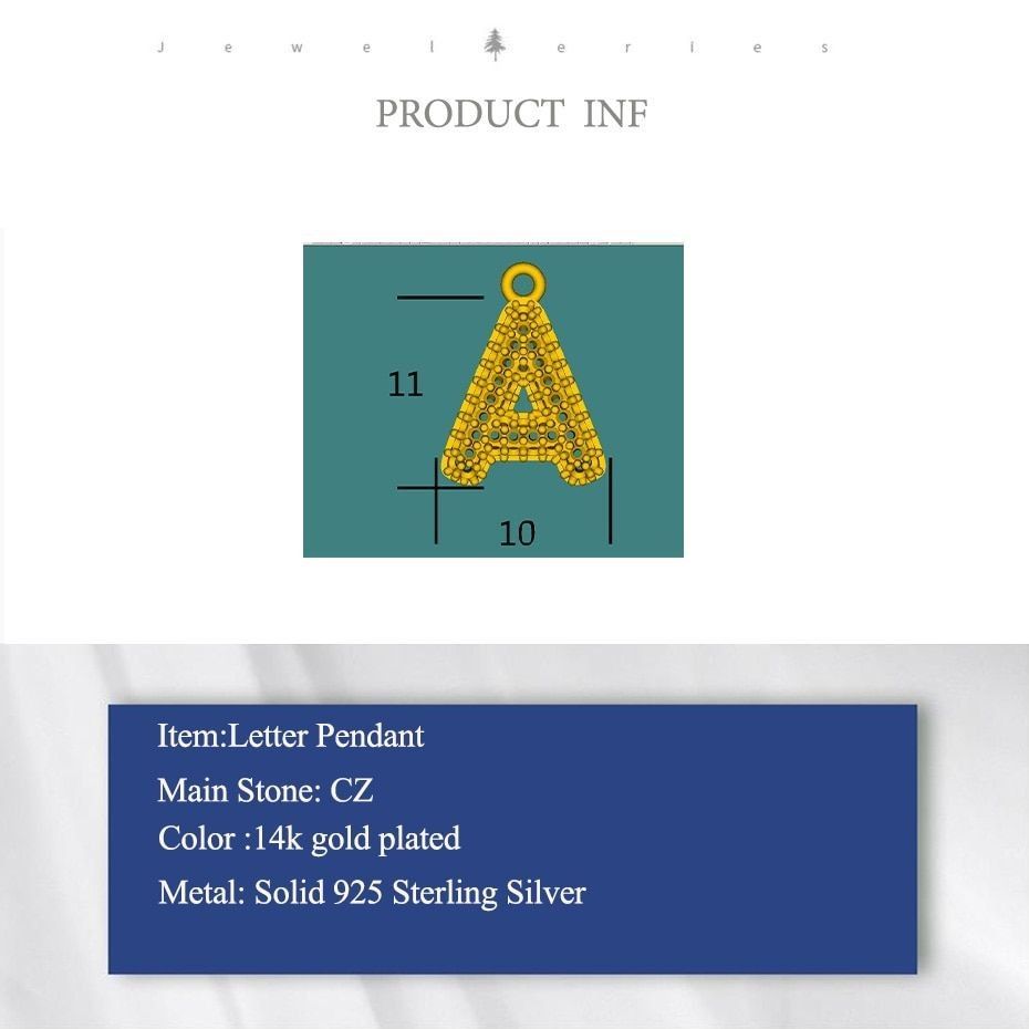 Damen Halskette 925 Sterling Silber 14K Vergoldet Alphabet A - Z Buchstaben Anhänger