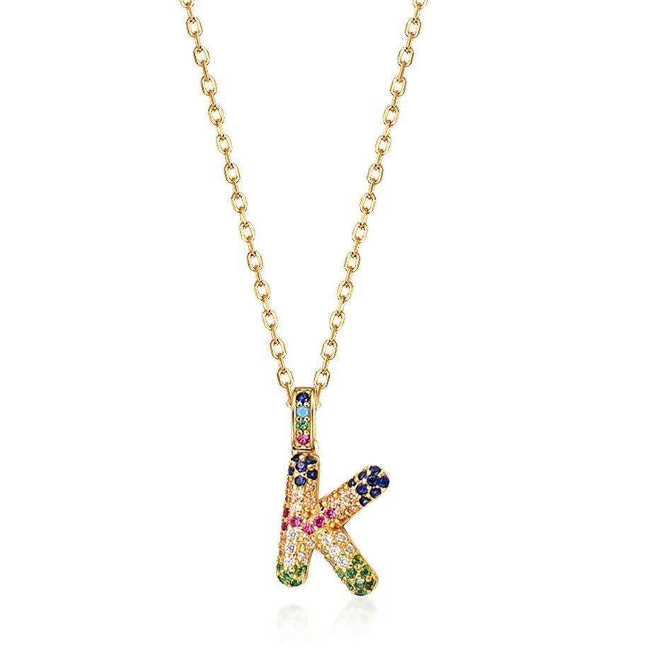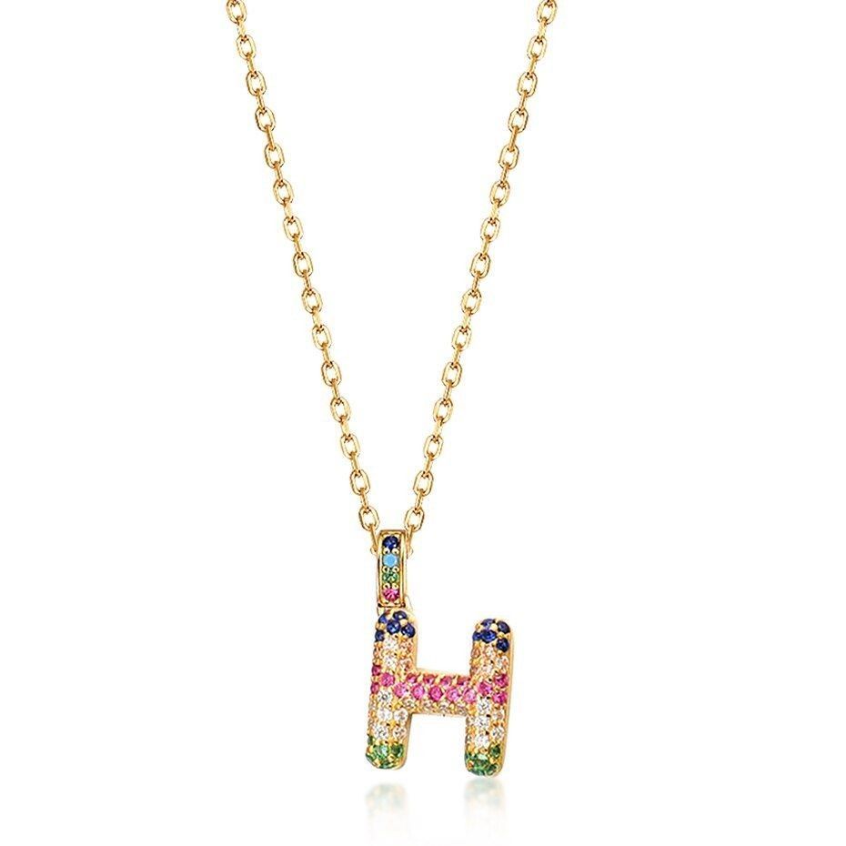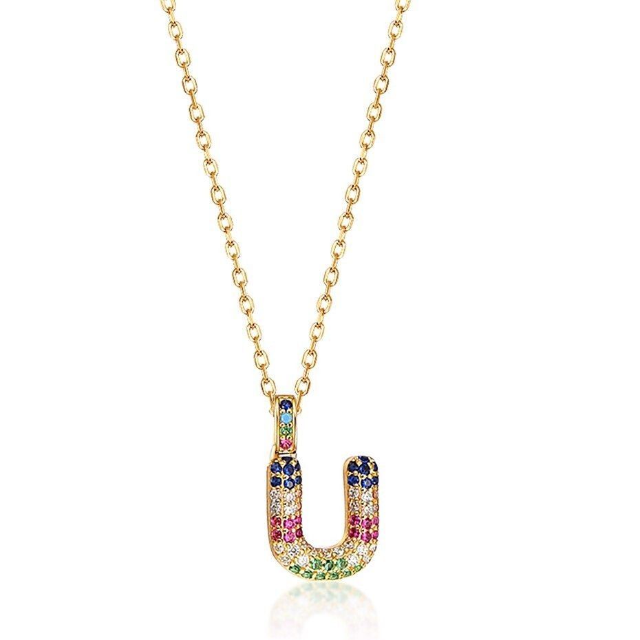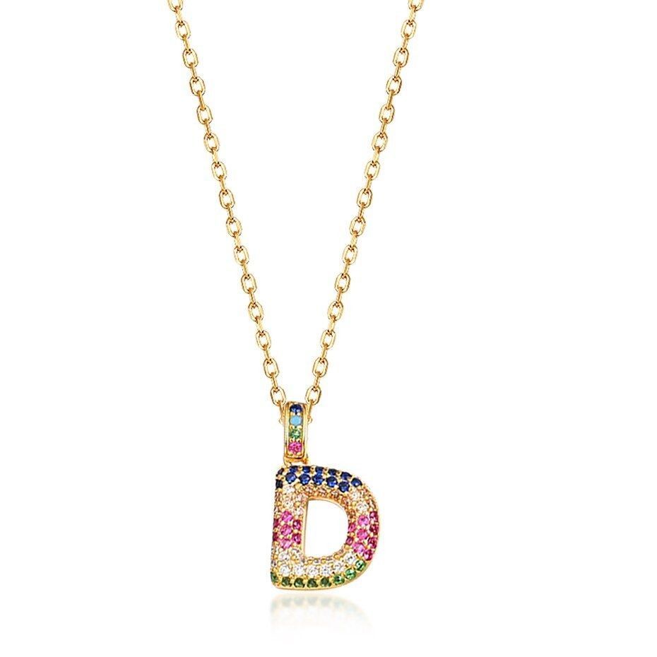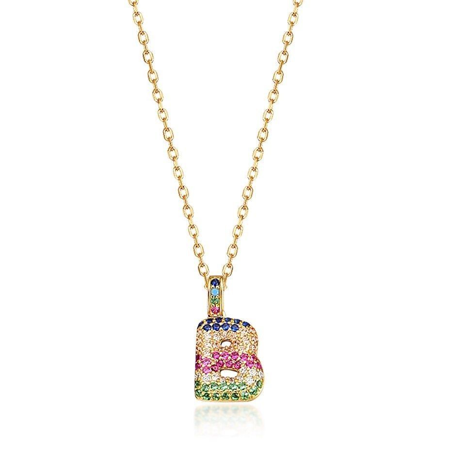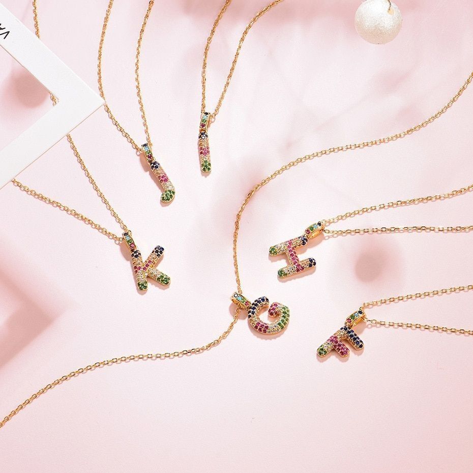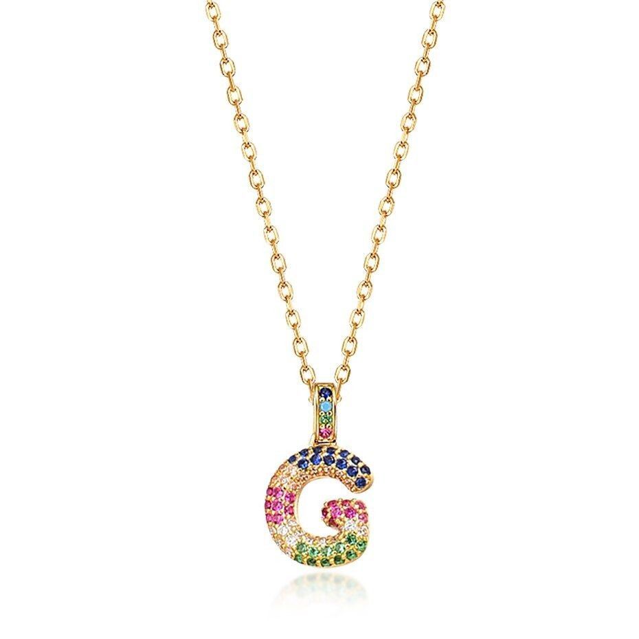 Damen Halskette 925 Sterling Silber 14K Vergoldet Alphabet A - Z Buchstaben Anhänger