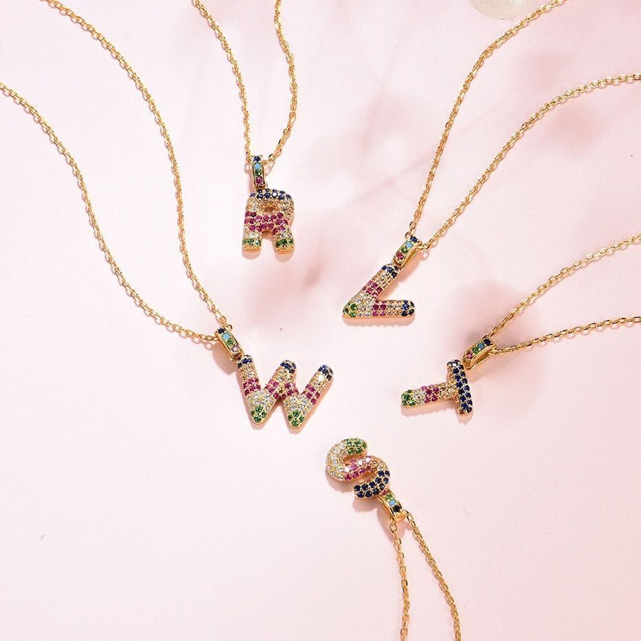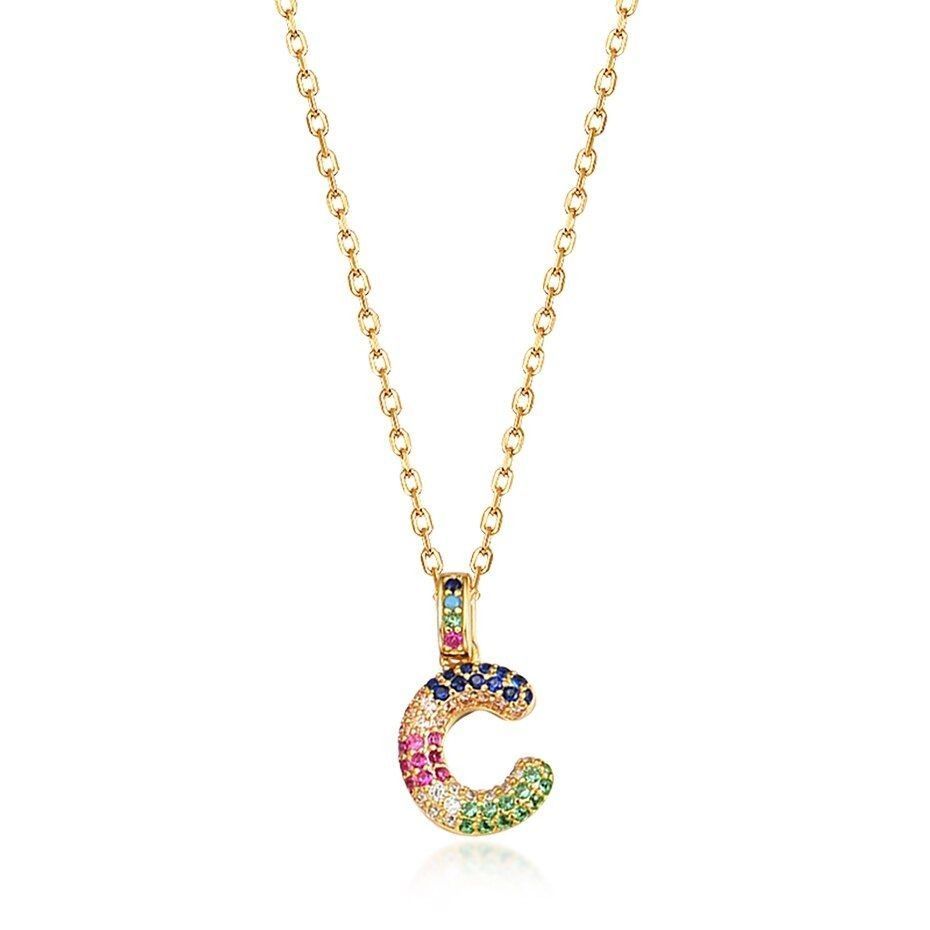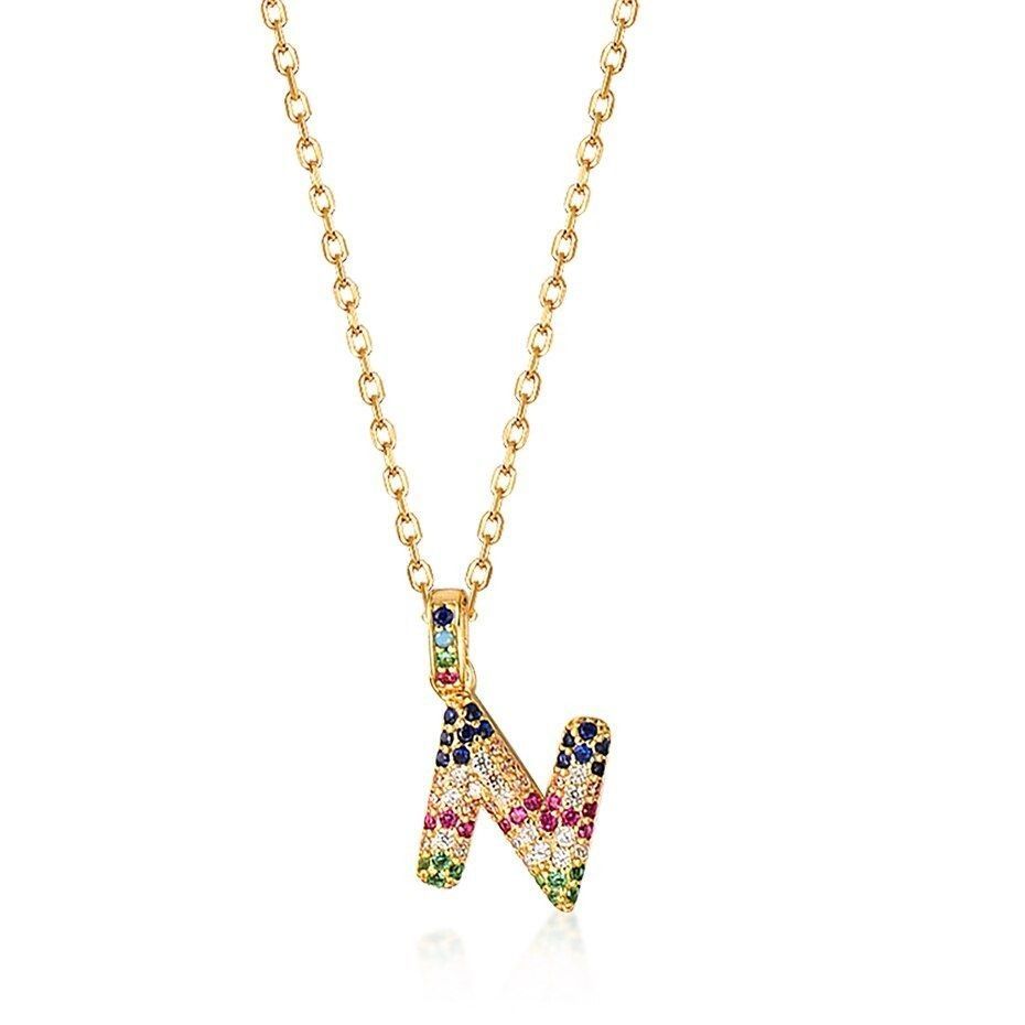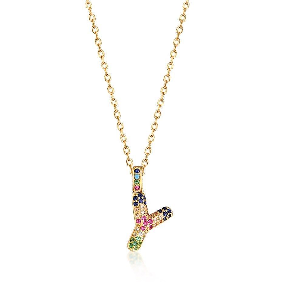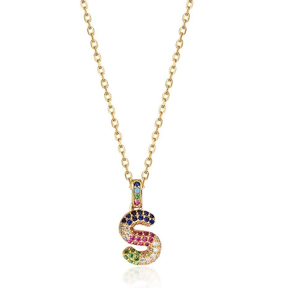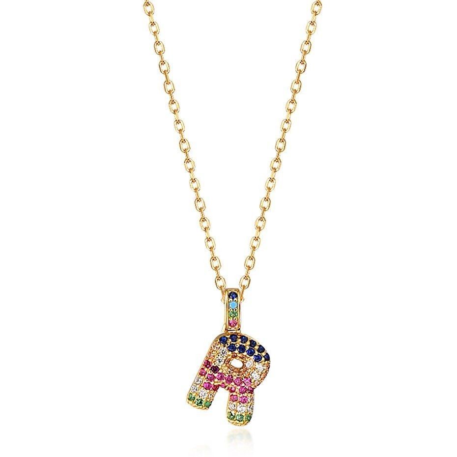 Damen Halskette 925 Sterling Silber 14K Vergoldet Alphabet A - Z Buchstaben Anhänger