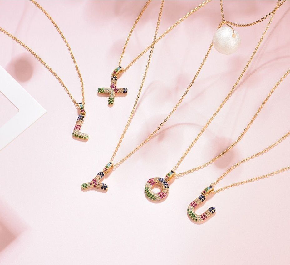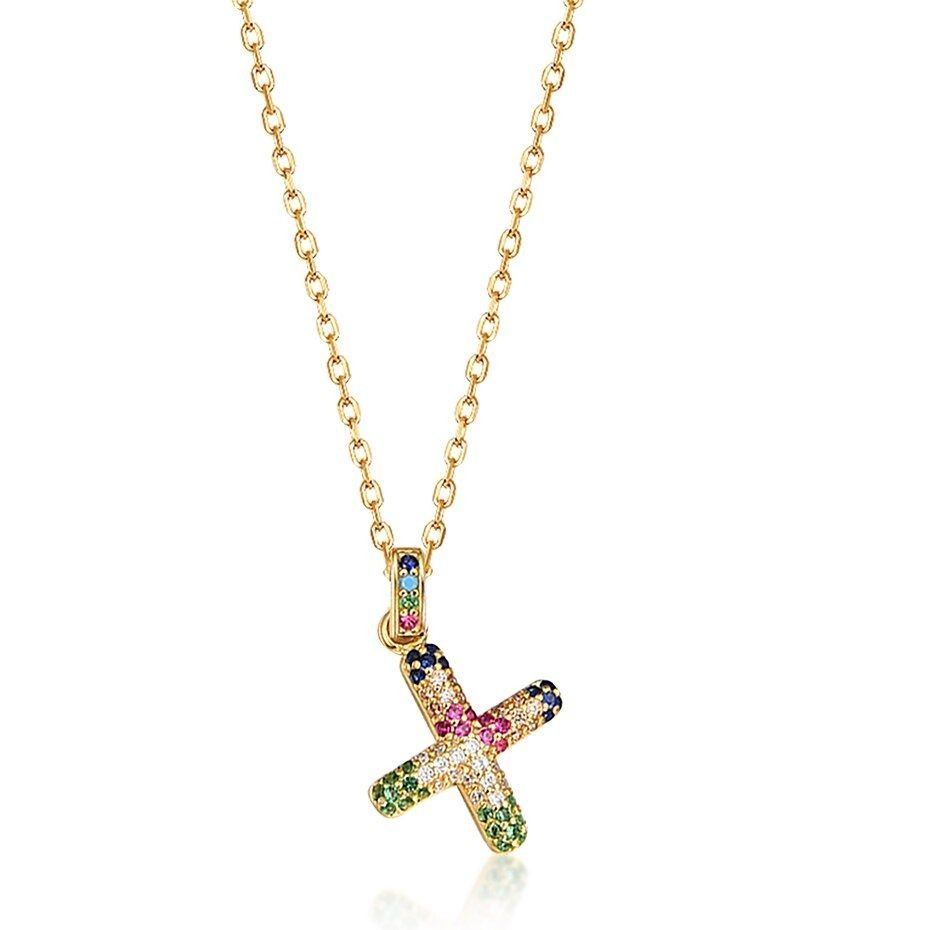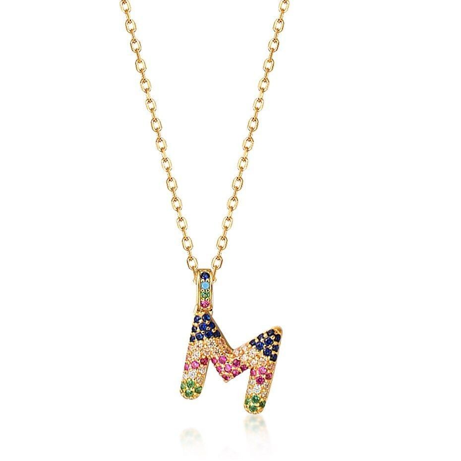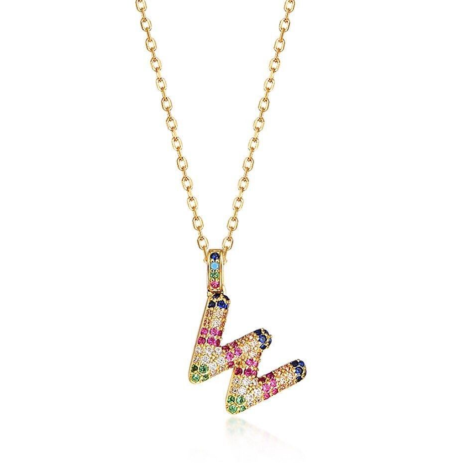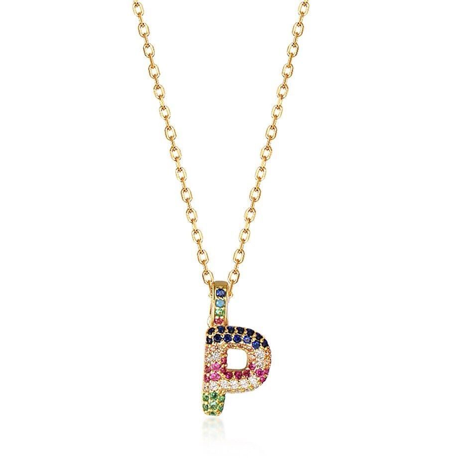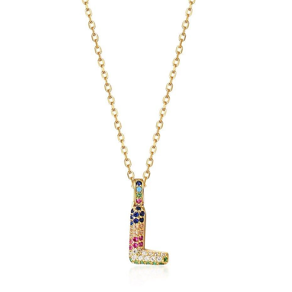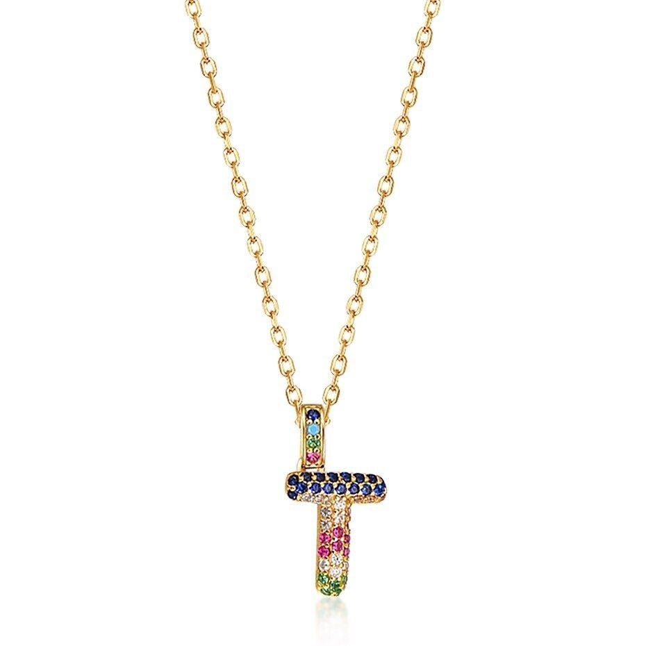 Damen Halskette 925 Sterling Silber 14K Vergoldet Alphabet A - Z Buchstaben Anhänger