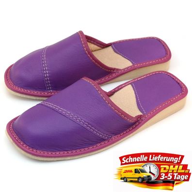 Damen Pantoletten Hausschuhe Schlappen Latschen Leder Pantoffeln Geschlossen Lila