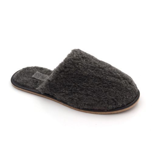 Damen Hausschuhe Warme Winter Lammfell Barfuß Bequeme Wolle Anthrazit Fellhausschuhe